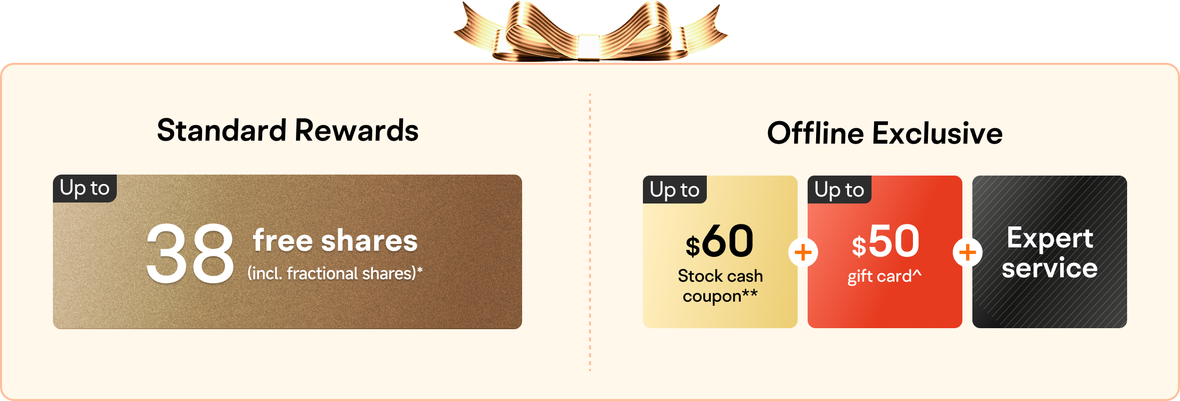 T&Cs apply. *Deposit $1,000/$3,000/$8,000/share on social media and maintain account balance for 30 days to earn 5+10+15+8 random free fractional or whole US shares, probability-weighted average value $2.88/share as of 24/7/2025. **The stock cash coupon is valid for 14 days, only applicable to AU & US stock buy orders above AU$100 or equivalent, and provides a cashback upon use. ^Only on Monday, users who deposit $8,000 in store can get a extra $50 gift card.