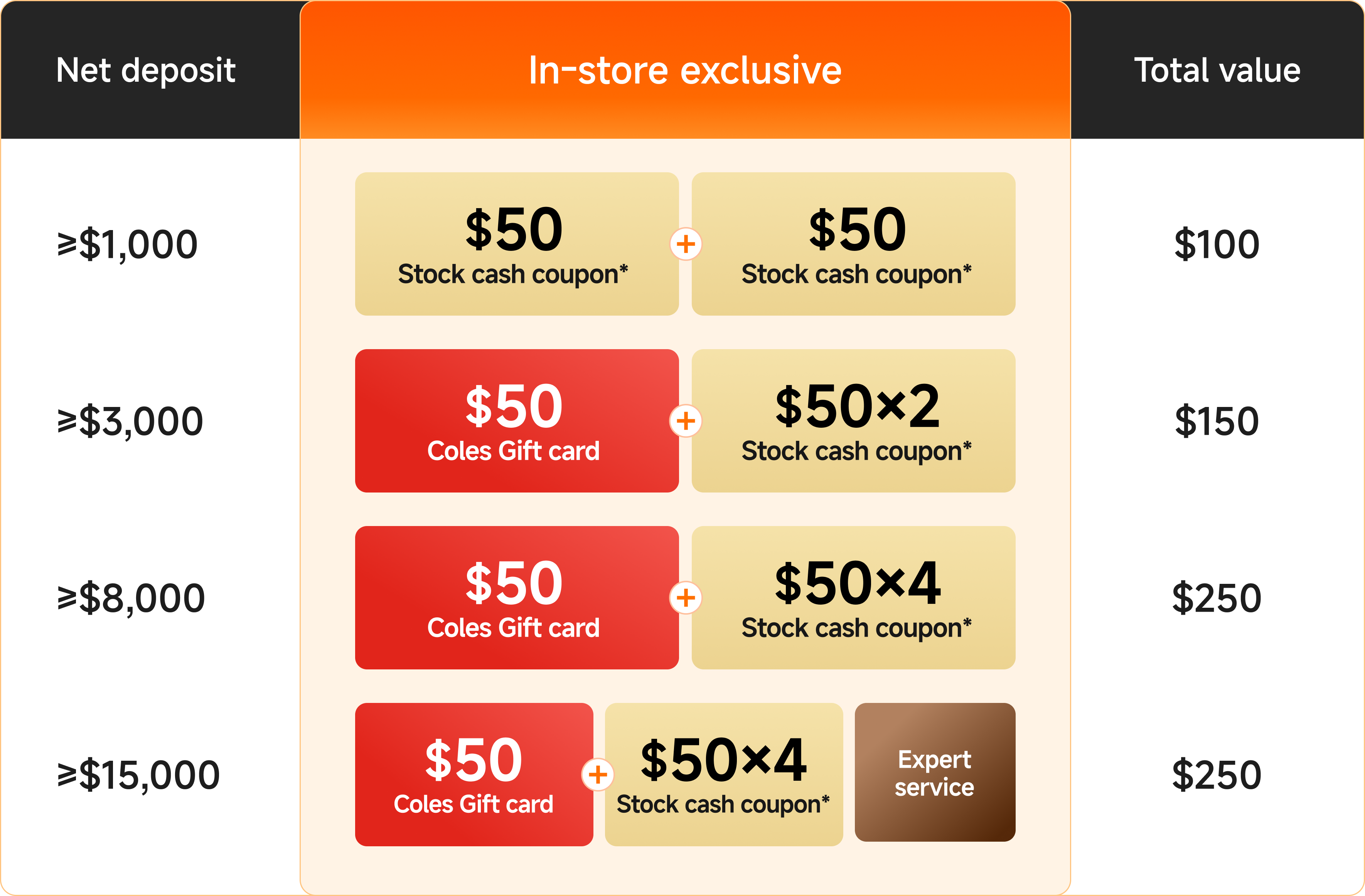 The 30 Free Shares Offer is a game of chance promotion offered by Moomoo AU, under NSW Trade Promotion Permit TP/01819. This offer is only available to New Clients (as defined in the Terms and Conditions). New Clients who successfully complete new deposits of AUD $1,000, $3,000, and $8,000 during the Promotion Period will be eligible to receive 5 + 10 + 15 free shares including fractional shares respectively. These stocks are randomly selected from a basket containing six different US stocks. Based on close of market share prices and AUD/USD exchange rate observed on 24 July 2025, the prize pool value ranges from a maximum of A$503.56 per share to a minimum of A$2.59 per draw, with a probability-weighted average value of A$2.88 per draw. The winning probabilites are: