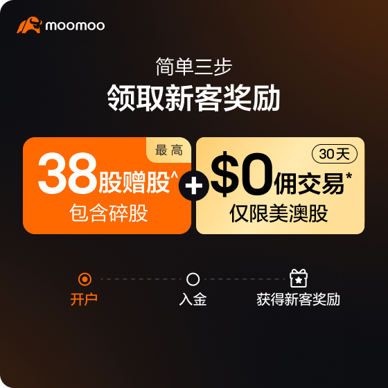 条款和资格适用。*不包括代收费和换汇成本。只适用于澳股和美股。获得免佣卡后需在60天内激活使用,激活后30天有效。^新客户入金$500/$2500/$8000/分享moomoo至社交平台,并且保持账户总额30天,即可赢取5+10+15+8股随机美股整股或碎股,以2025/7/24收盘价计算概率加权平均价值$2.88每股。