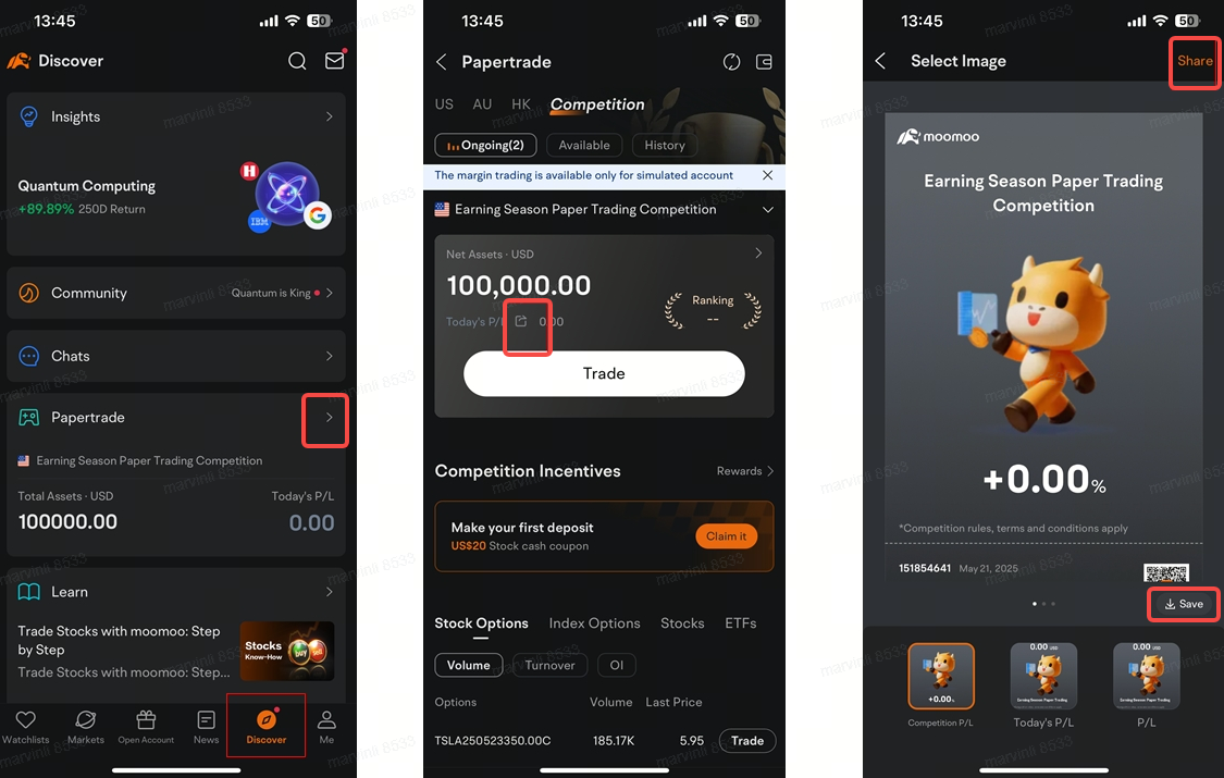 step2. 保存比賽收益圖(或直接分享),併發布一條Instagram post,正文@moomoo_anz