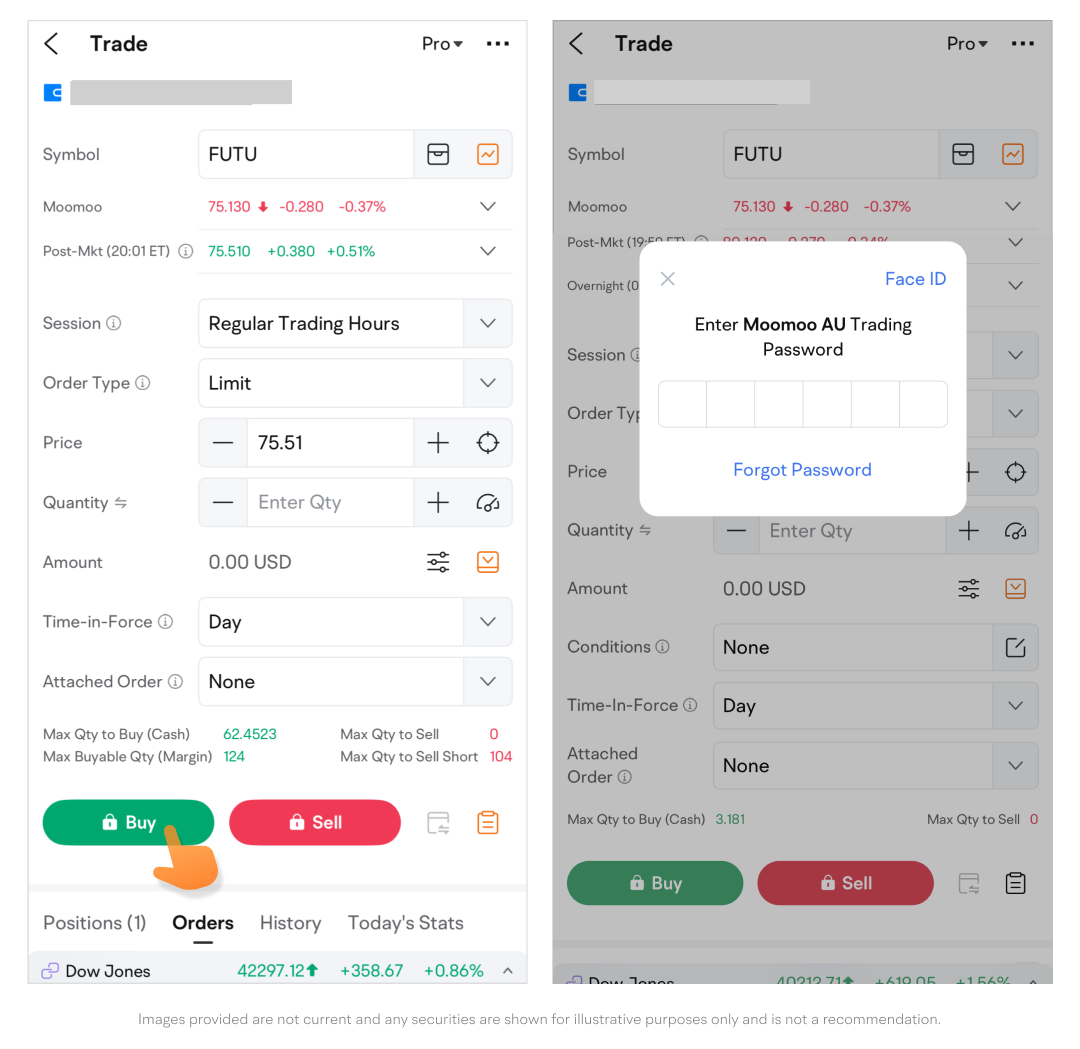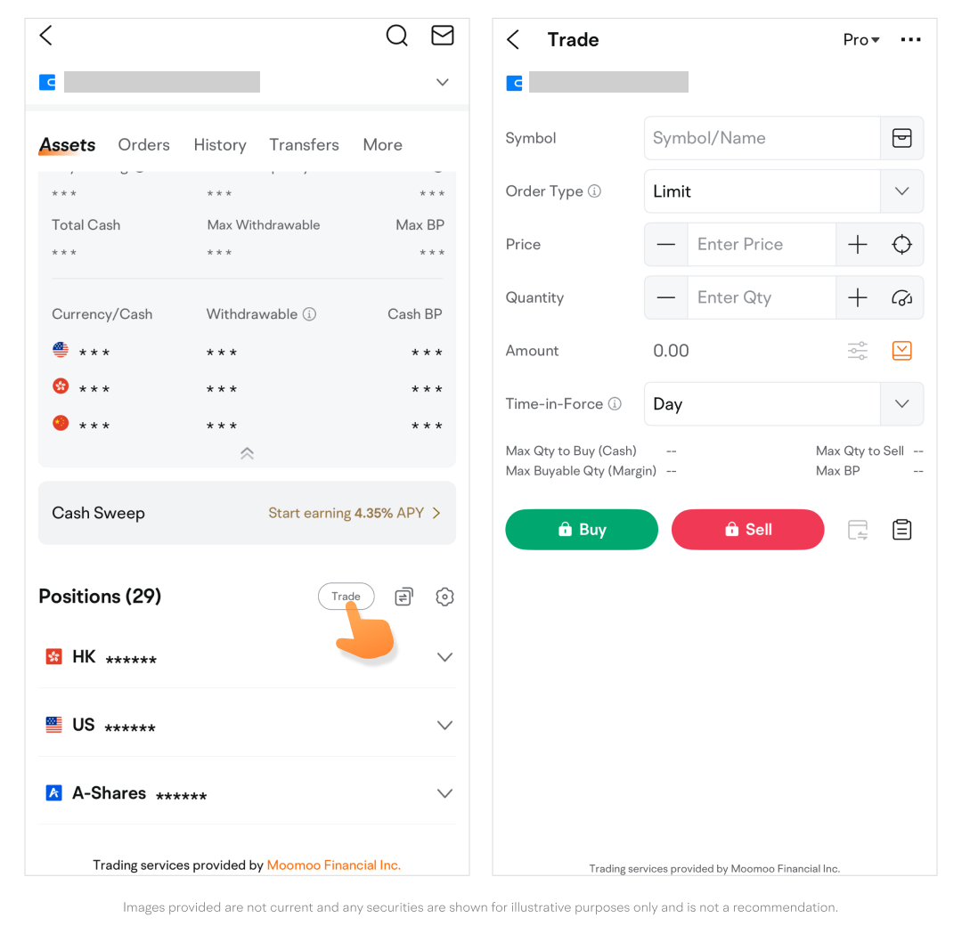 (Please be reminded that a trading password is set by yourself for trading purposes, which will be different to the one you setup for the moomoo app log in. You may cross reference to Chapter 5.5.1 on how to set and reset the trading password.)