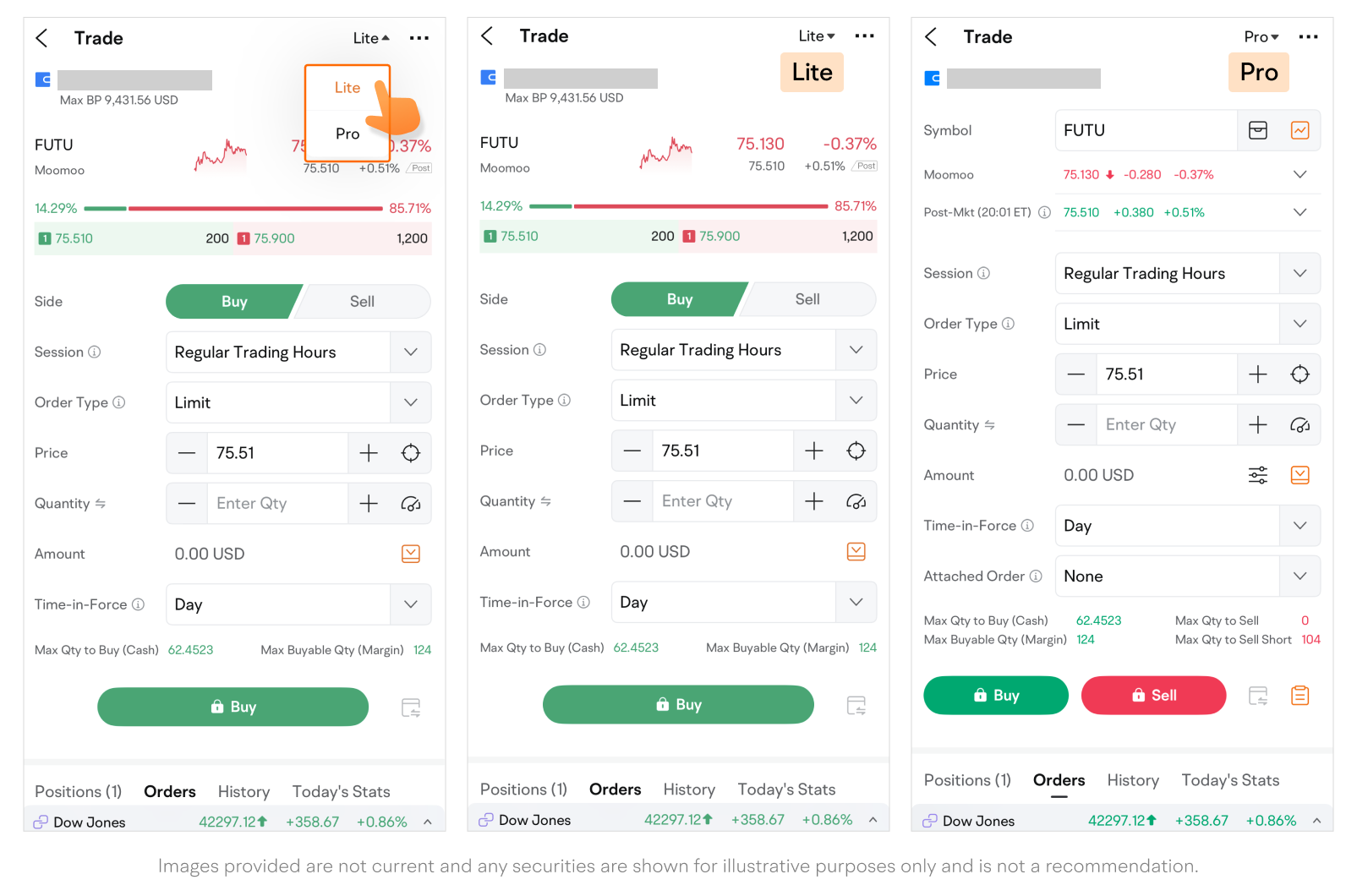 Moomoo offers two trade page interfaces to suit different user preferences: