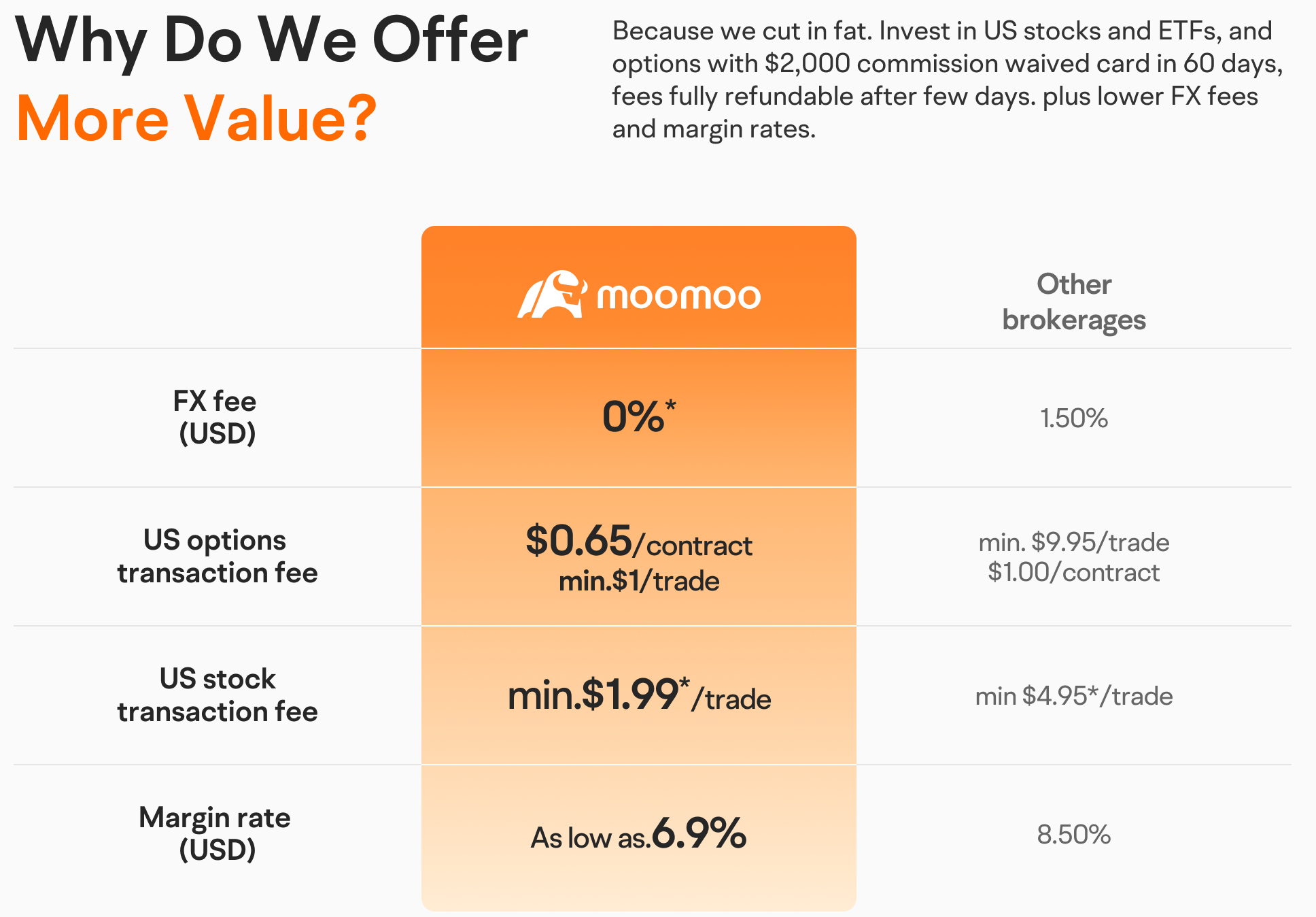 | Price | Your Total Cost Commission + FX Fee | $xxx More Than moomoo |