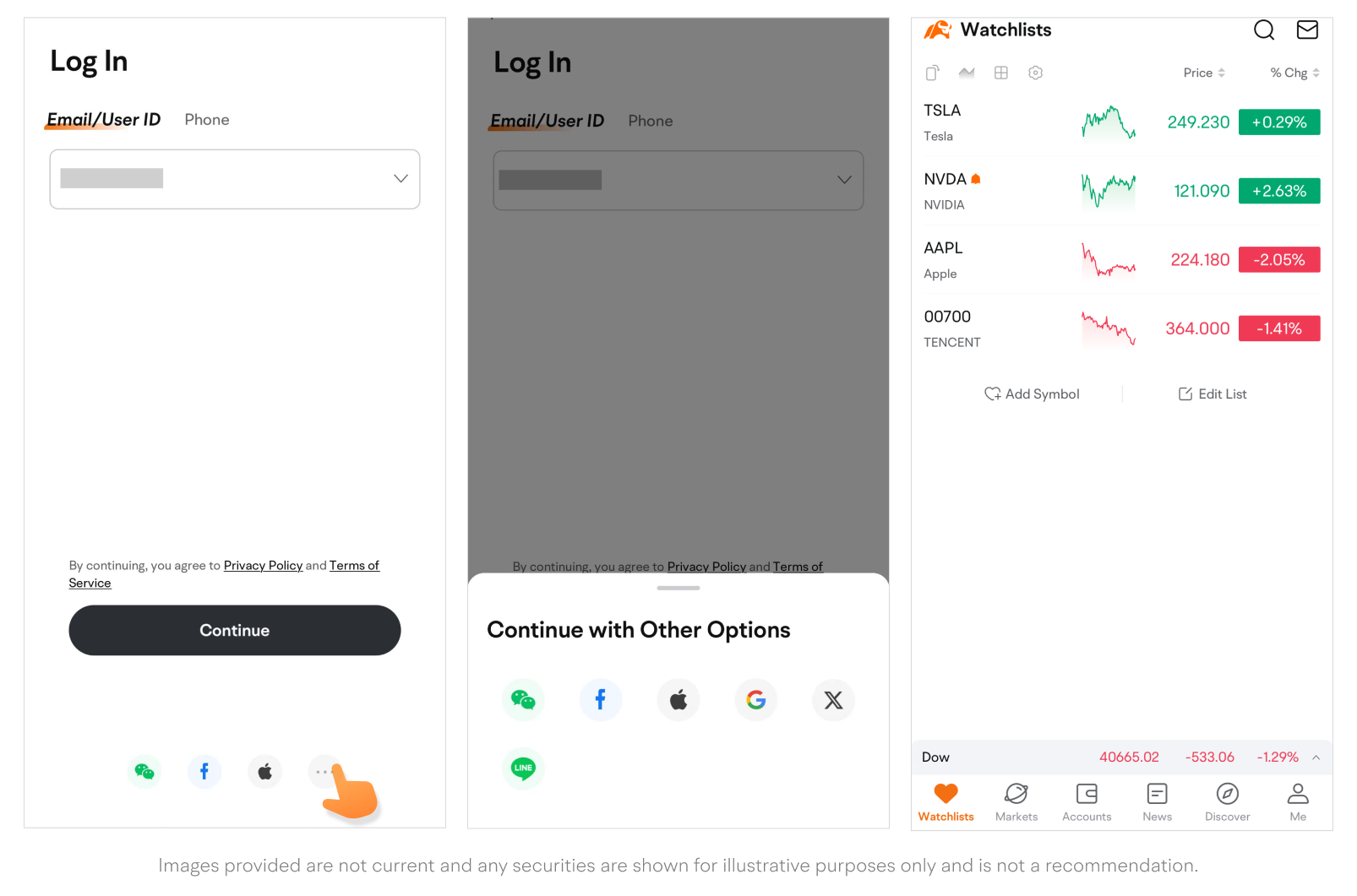 • Tap the ... icon to show more third-party login options.