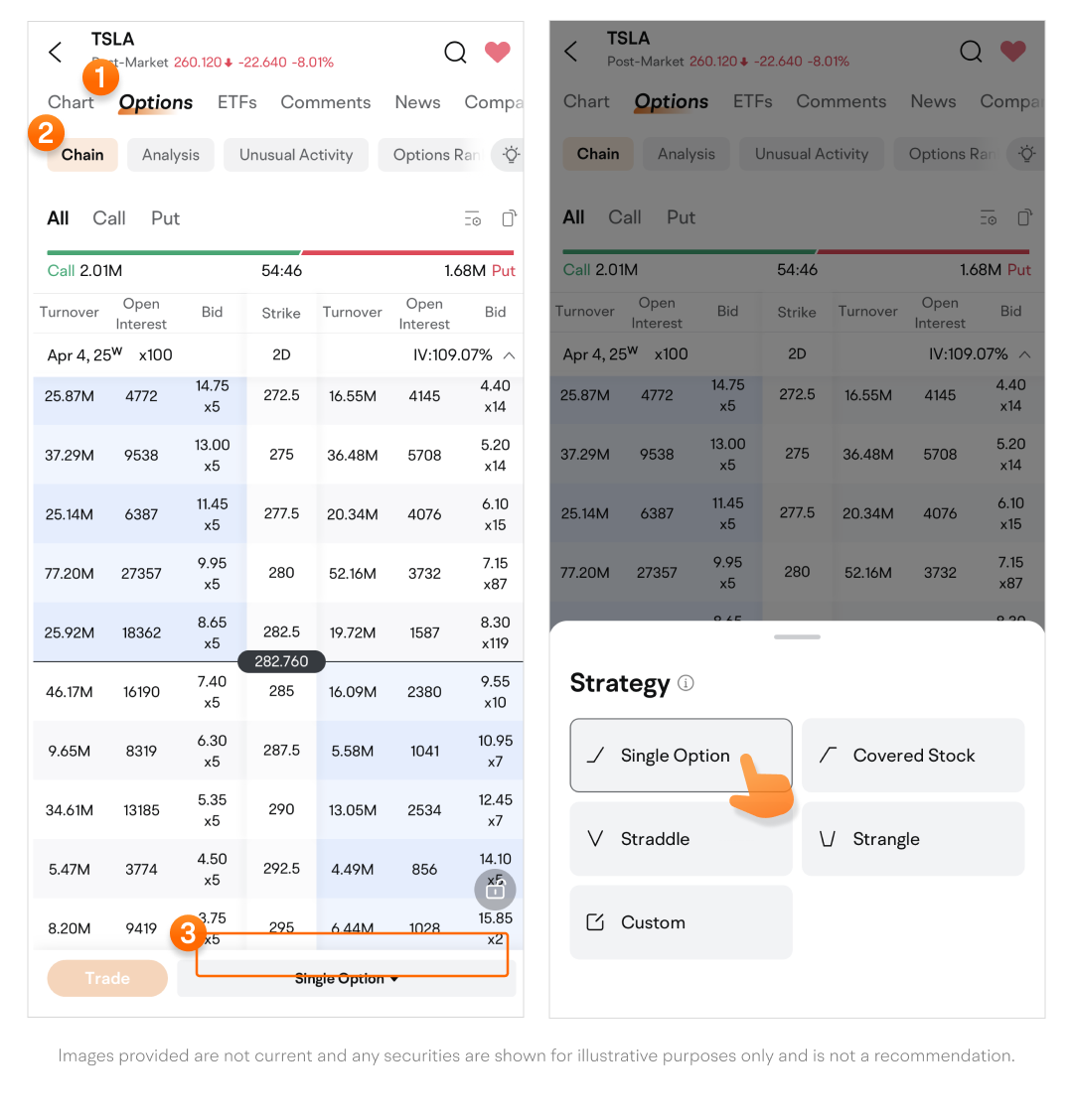 • Tap the ⓘ icon next to Strategy to learn more about options strategies.