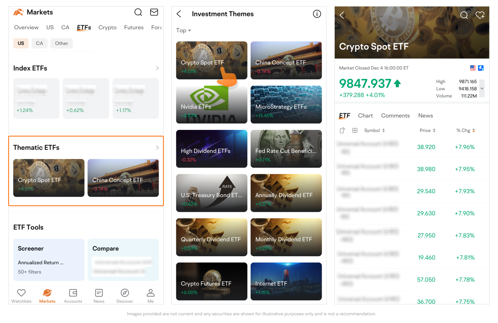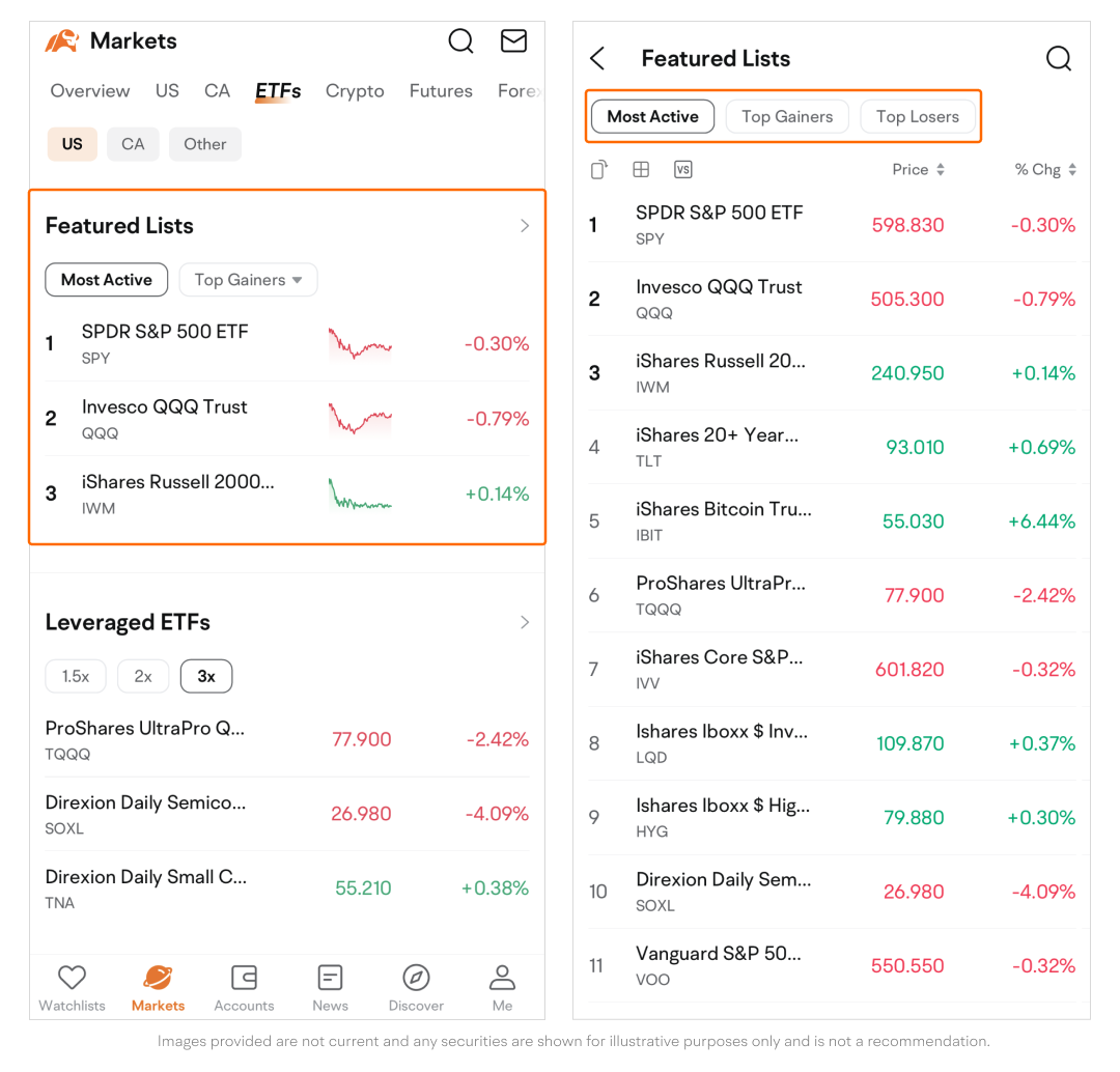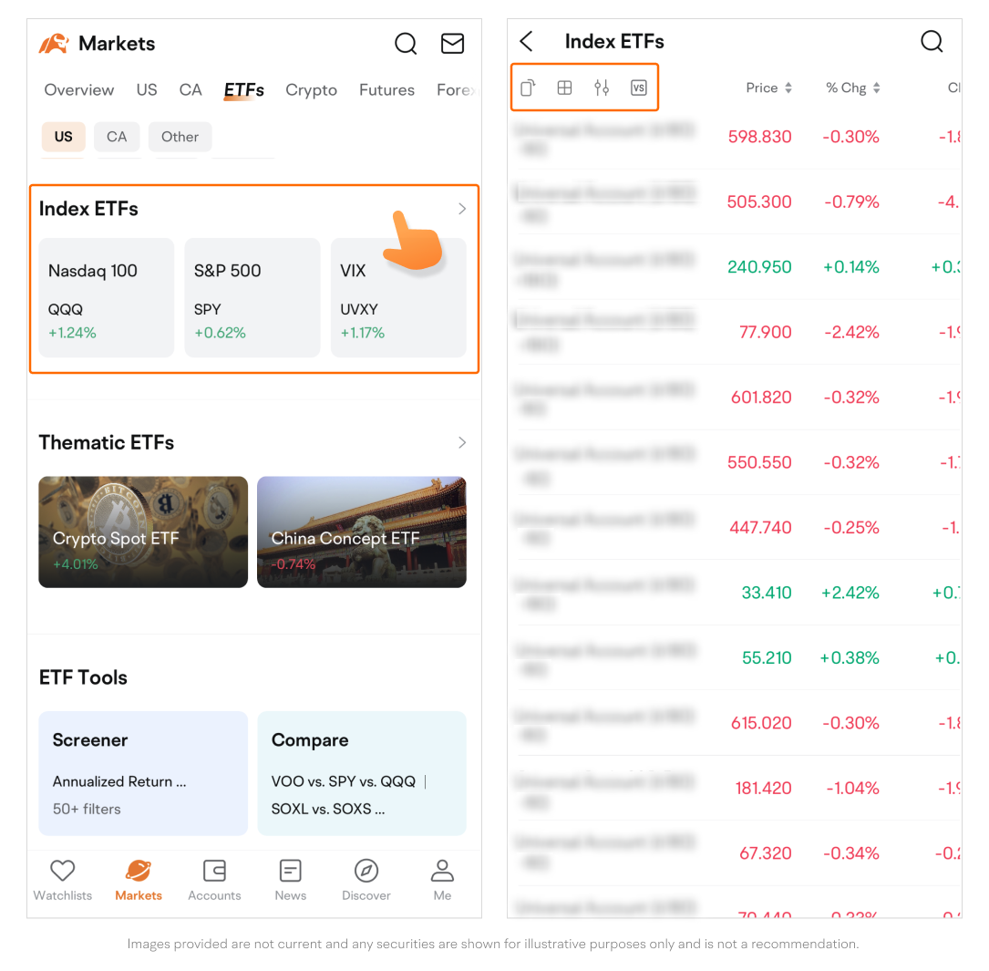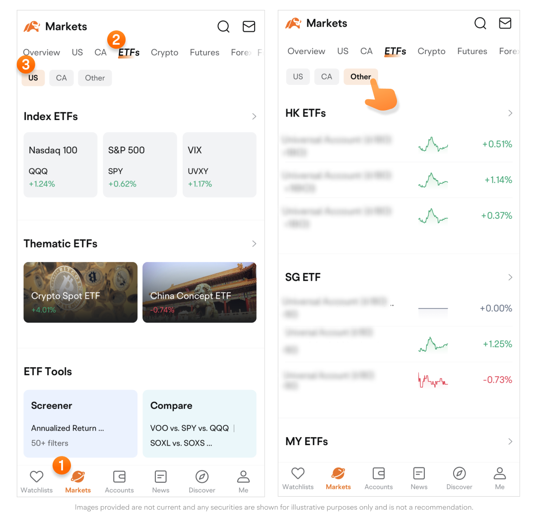 Path: Go to the Markets page > Tap ETFs on the top navigation bar.