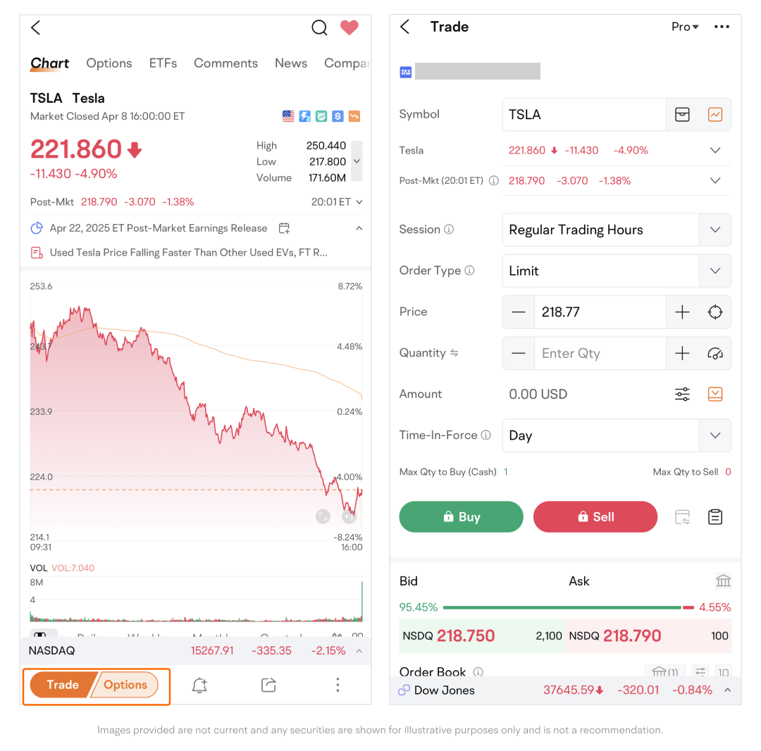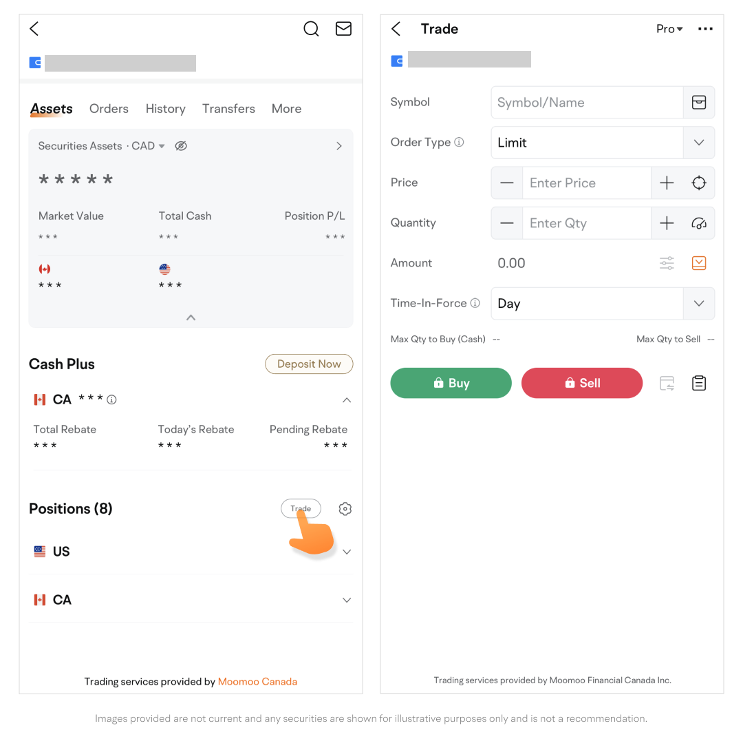 Moomoo offers two trade page interfaces to suit different user preferences: