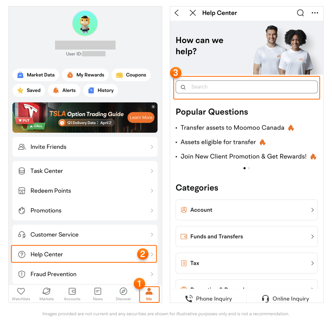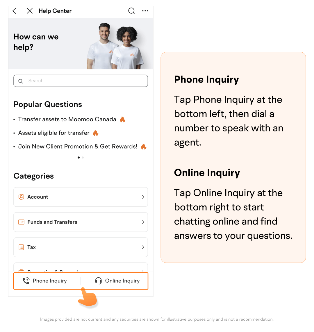 • Tap Online Inquiry at the bottom right to start chatting online and find answers to your questions.