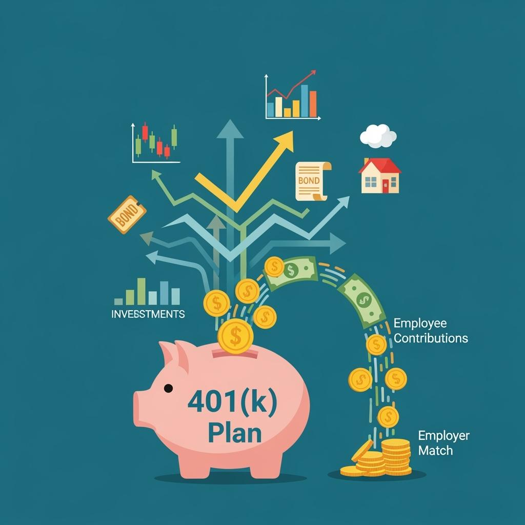 Simply put, a 401(k) is the most mainstream type of employer-sponsored retirement savings plan in the United States. Employees contribute a portion of their monthly salary to this account, and employers often match a percentage of these contributions as a benefit. This money enjoys tax advantages and is invested in financial products like stocks and bond funds, where it remains until the employee retires.