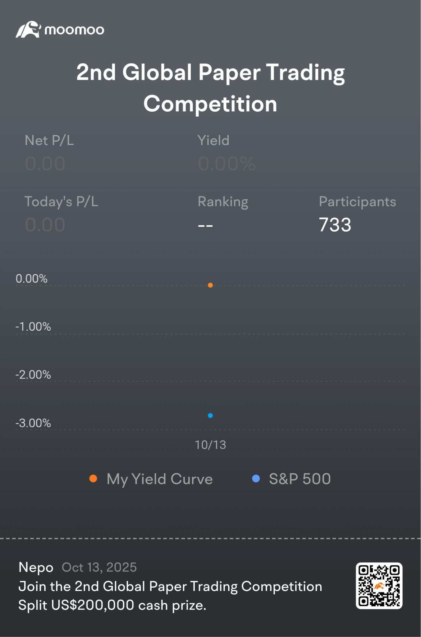 I'm in the 2nd Moomoo Global Paper Trading Competition, turning skills into cash rewards! Click the link to join me and let's split the US$200,000 cash prize!*