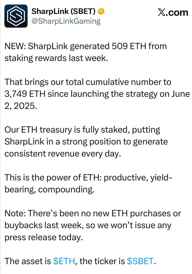 $SharpLink Gaming (SBET.US)$I obtained 509 through staking l...