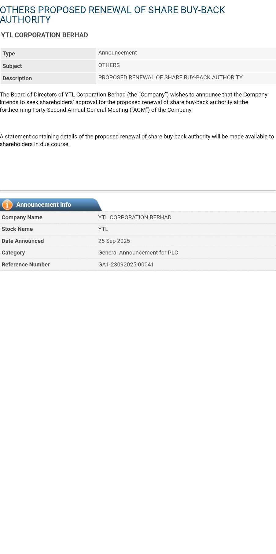 $YTL (4677.MY)$ YTL itself is also repurchasing its own shar...