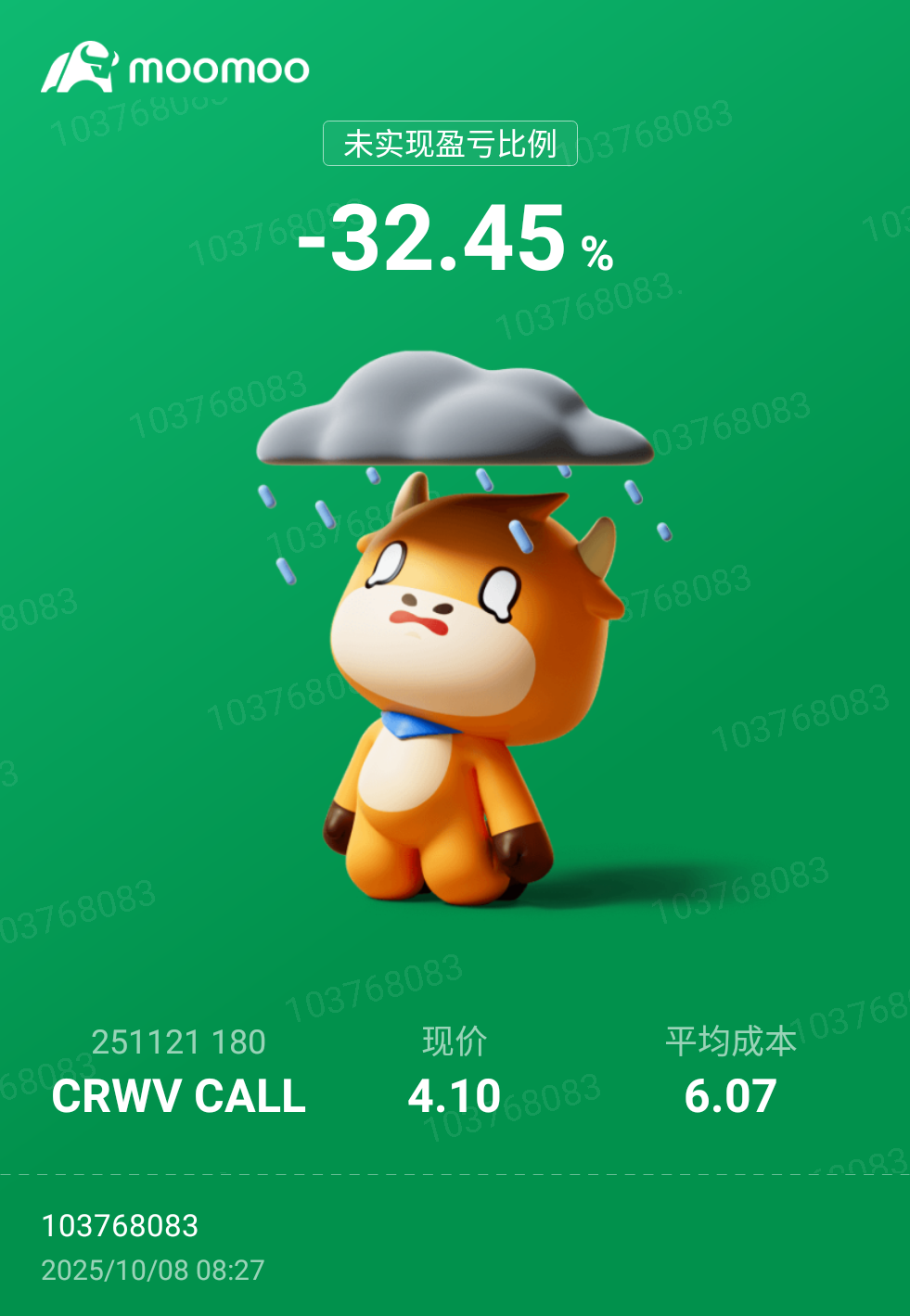103768083 楼主 崔教授 : 正股赚的都在期权上亏掉了![失望 [失望]](https://static.moomoo.com/nnq/emoji/static/image/default/default-black.png?imageMogr2/thumbnail/36x36)