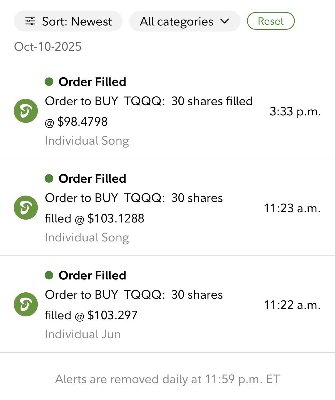 $三倍做多纳指ETF-ProShares (TQQQ.US)$ 今天购买1万美元。