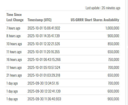 $Gorilla Technology (GRRR.US)$ Fintel追踪的可做空股数直到上个月还在0到数万之间徘徊...