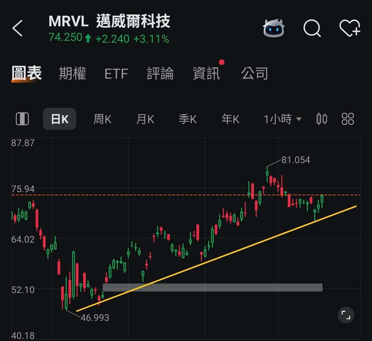$迈威尔科技 (MRVL.US)$ 76/78.8