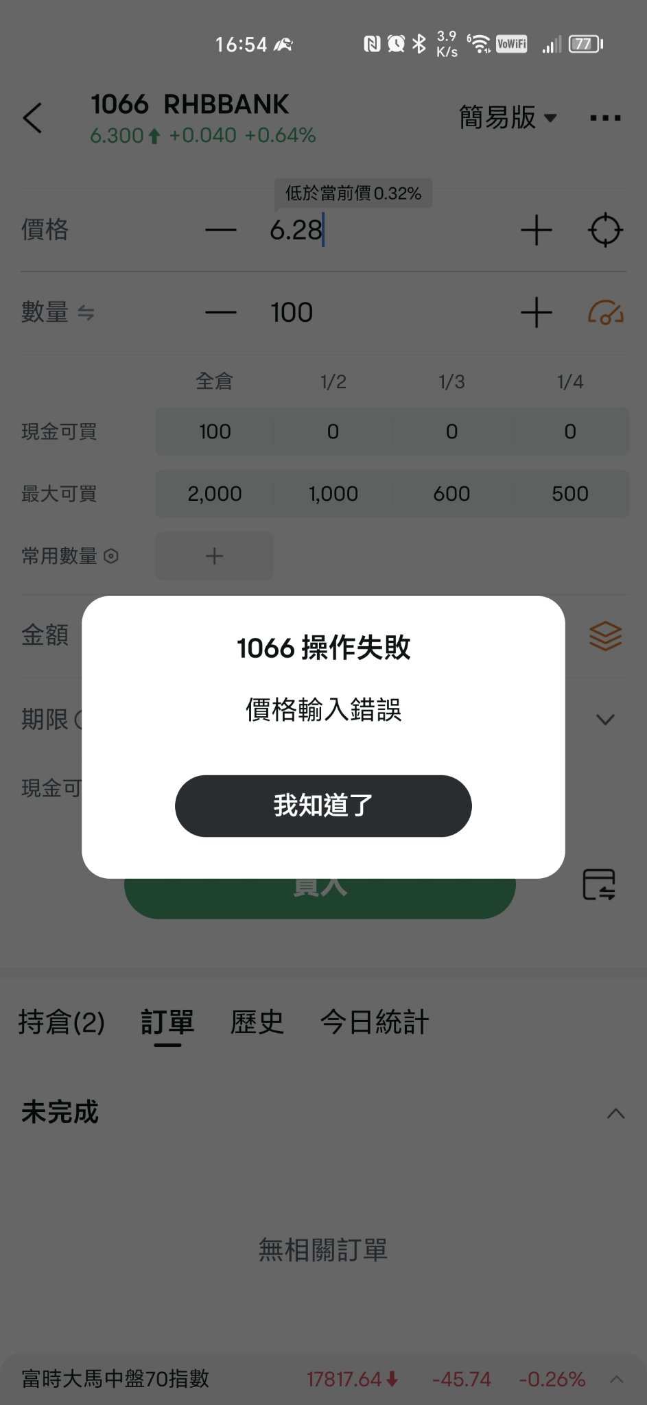 为什么买什么股票都下单失败是不是有什么问题?求大神解答