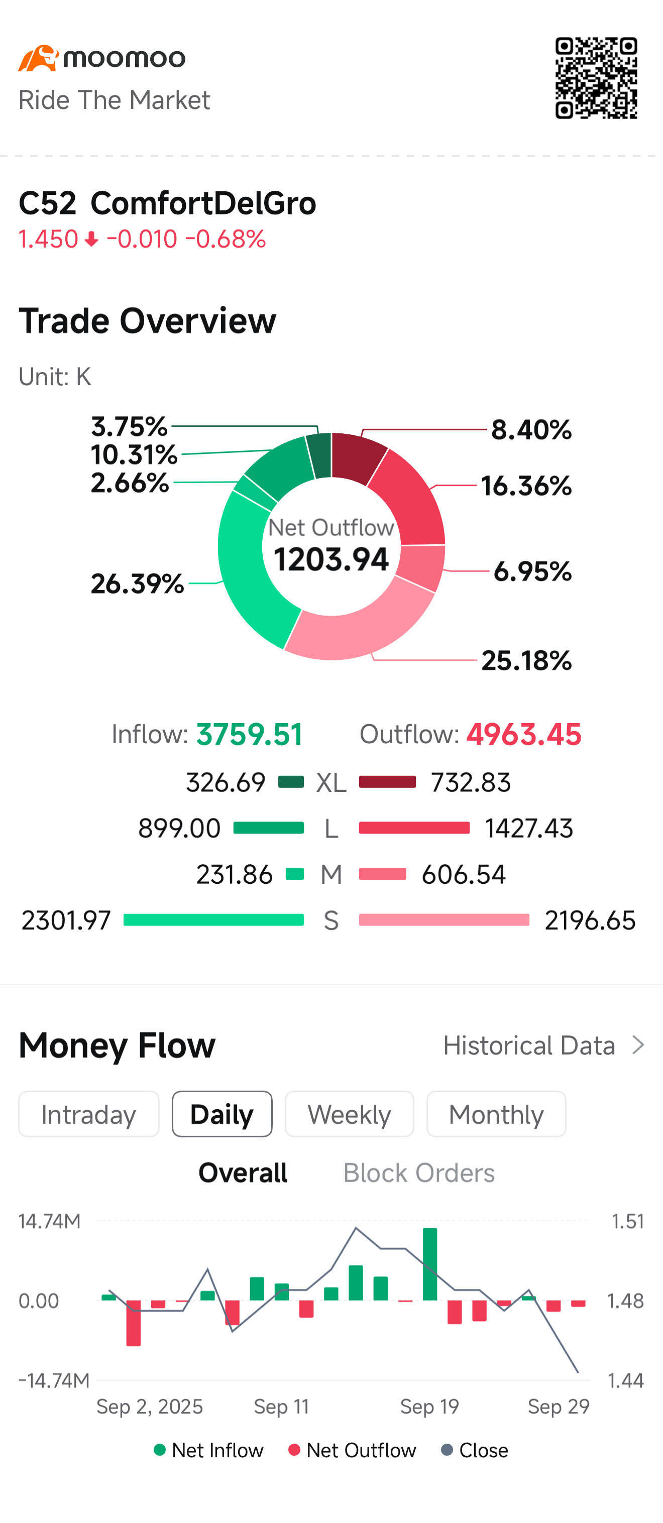 正如所讨论的,买入=流出,卖出=流入,为什么股价还在下跌?每个卖家都必然有一个强制买家。🙏🏻希望Moomoo能帮我理解这个图表以及概念。