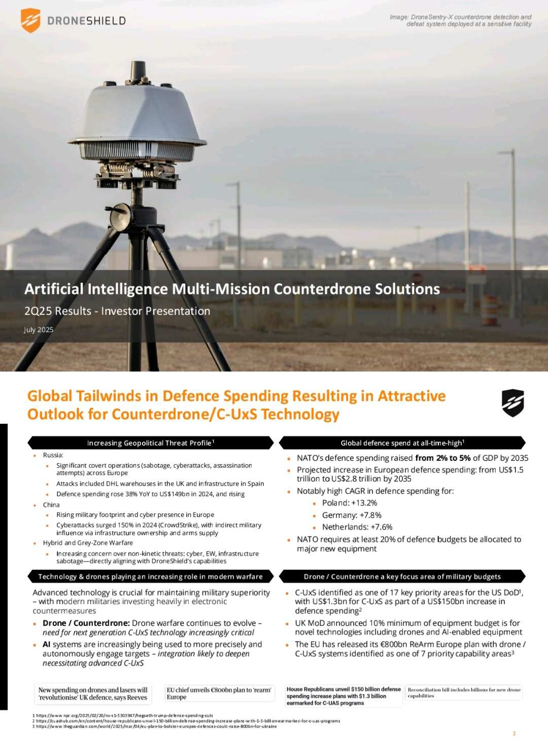 DroneShield Ltd: 2025年7月投資者報告