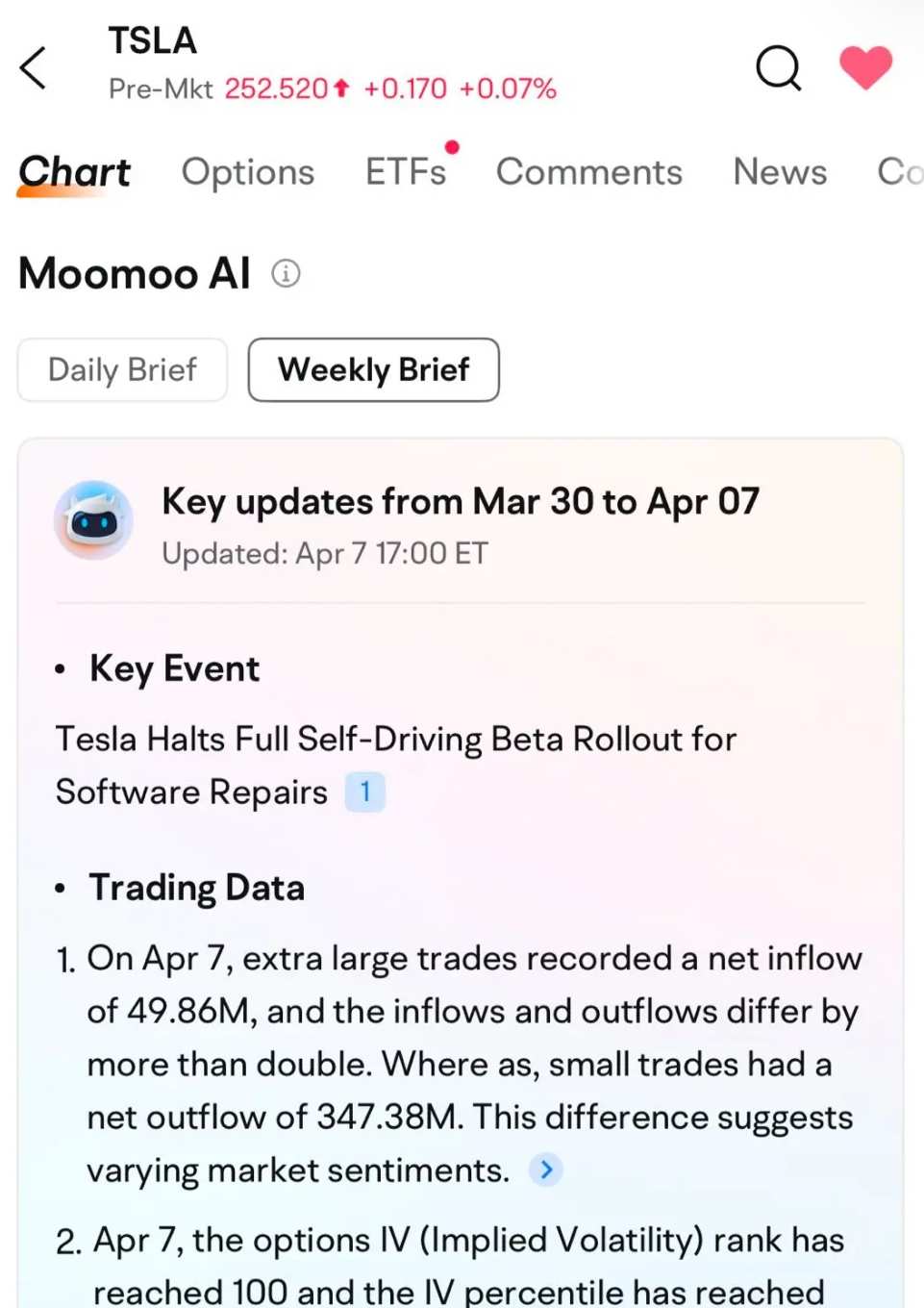 我定期使用Moomoo AI每週簡報功能,發現它在快速彙總重大事件和交易情緒方面特別有幫助。