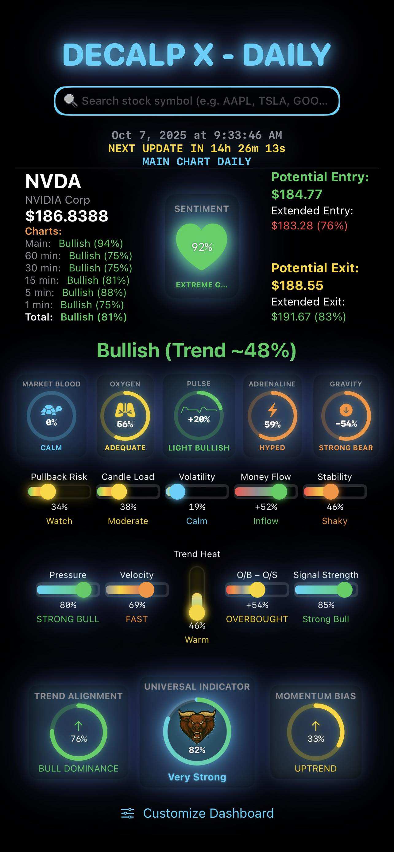 快速查看所有時間框架下的股票市場——從快速的1分鐘視圖到更大的日線圖。