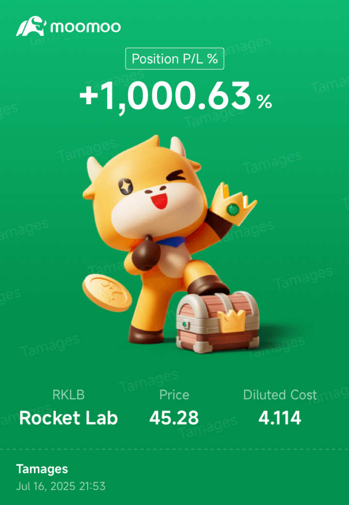 $Rocket Lab (RKLB.US)$ 正式成爲十倍股[呲牙]