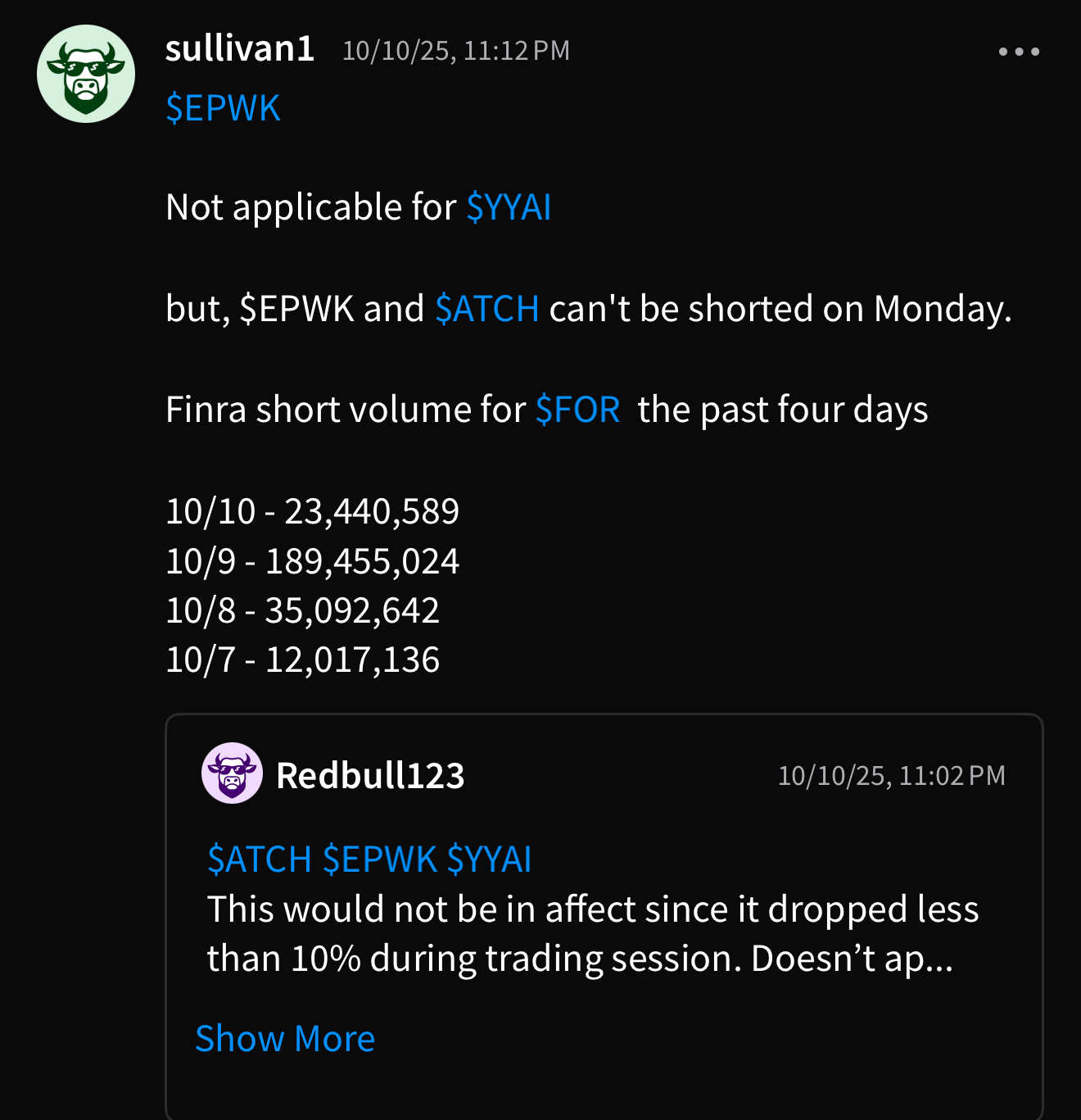 Mr Sir to Mars 樓主 : 那麼SSR肯定應該被觸發,所以週一應該不允許任何人做空,我不知道這對暗池有什麼影響。