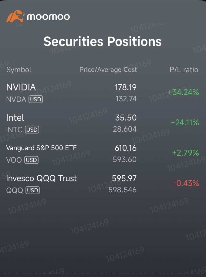 MDJView : 其實沒必要賣出那些股票,具體取決於你的持倉規模,可以考慮將英特爾加入你的一隻基金中,直到你確定幾隻能夠與NVDA互補的股票。比如你可以保留基金,並持有三到四隻股票。作爲年輕人,不必擔心短期下跌和市場調整,只需選擇擁有不可替代產品且由傑出CEO領導的市場領軍企業。如果我是你這個年紀,我會加入Alphabet、Palantir、博通、甲骨文、Meta和Applovin。