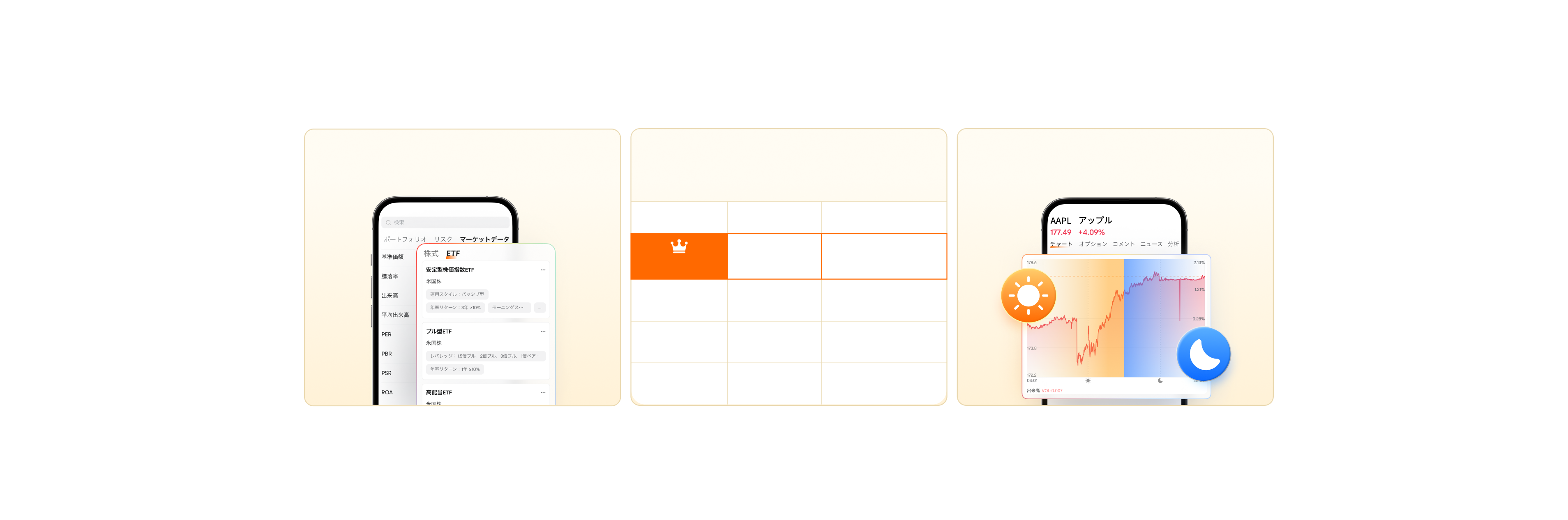 米国株(現物取引、micro米国株(端株)、オプション取引、信用取引、ETF)、日本株(現物取引、ひと株(単元未満株)、オプション取引、ETF、REIT)、投資信託などの商品がございます。お客様の投資機会をさらに広げるべく、取扱商品の充実を計画しています。
