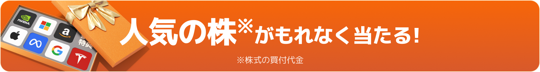 (2)利用条件:株式キャッシュバック券取得後21日以内に、3.3米ドル以上の米国株式の買い注文が約定すること - 対象株式:米国株式(個別株式・海外ETF) - 取引条件:米国株式の買付のみ。売却は対象外となります。口座種別(一般・特定・NISA)は問いません。