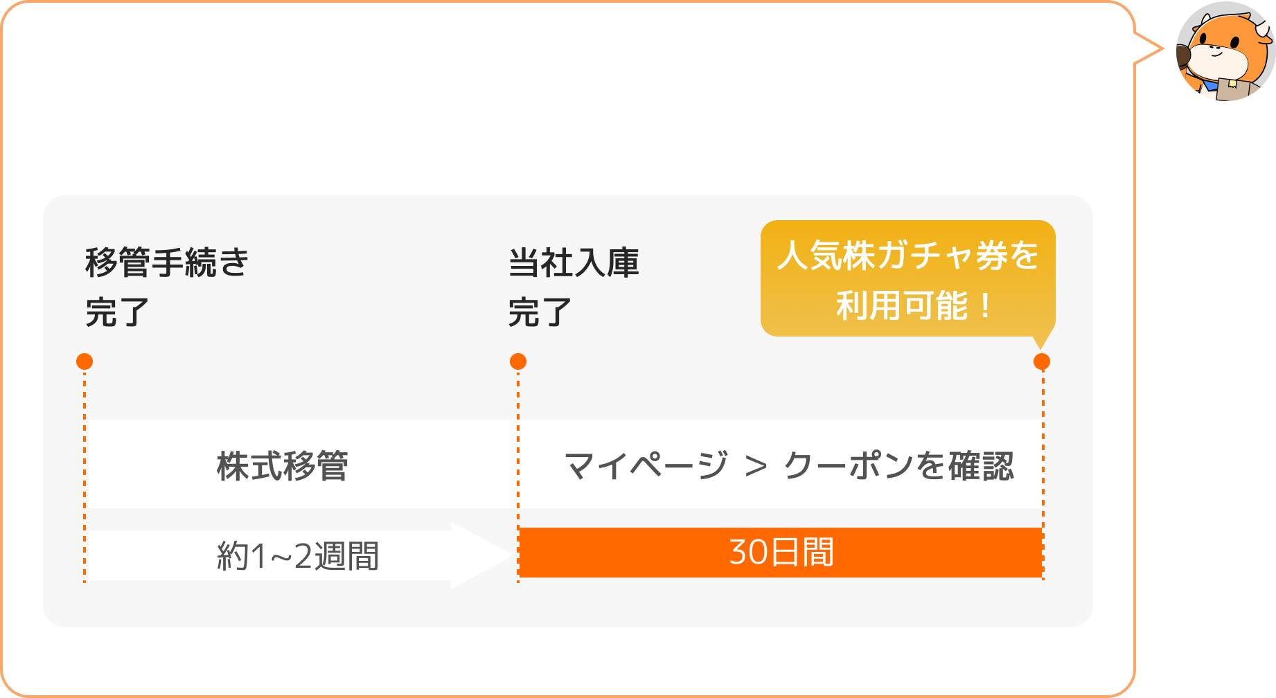 ※移管完了後、約1営業日で現金クーポンが発行されます。