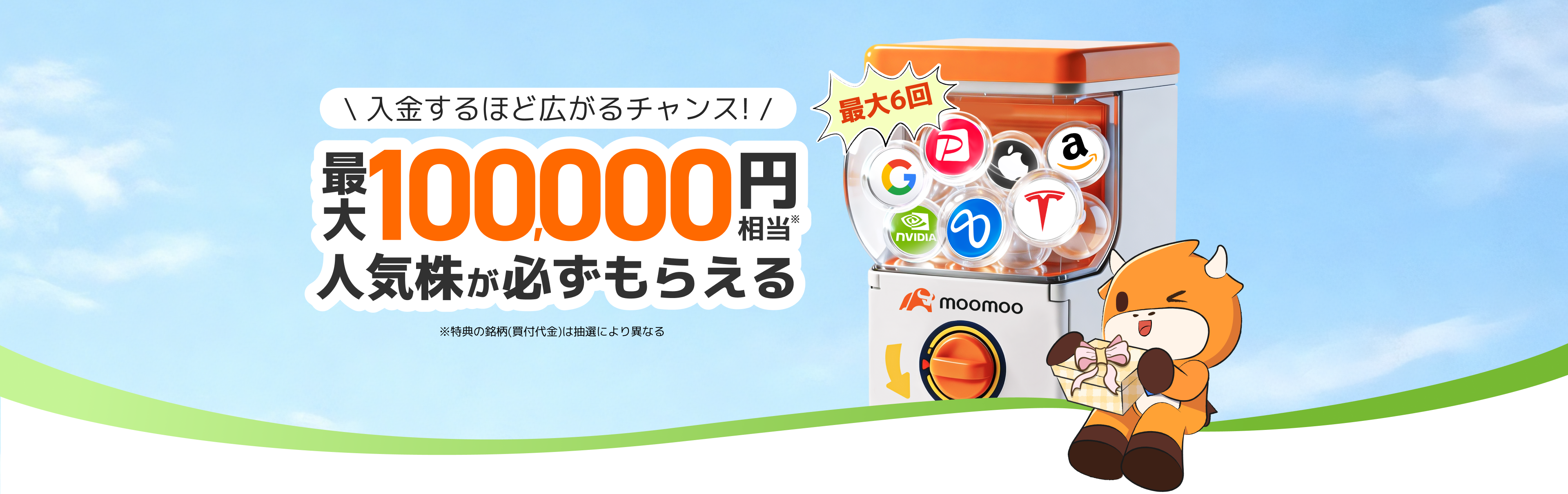 ※最大6回の抽選が可能で、最大10万円分相当の人気株(買付代金)が当たります