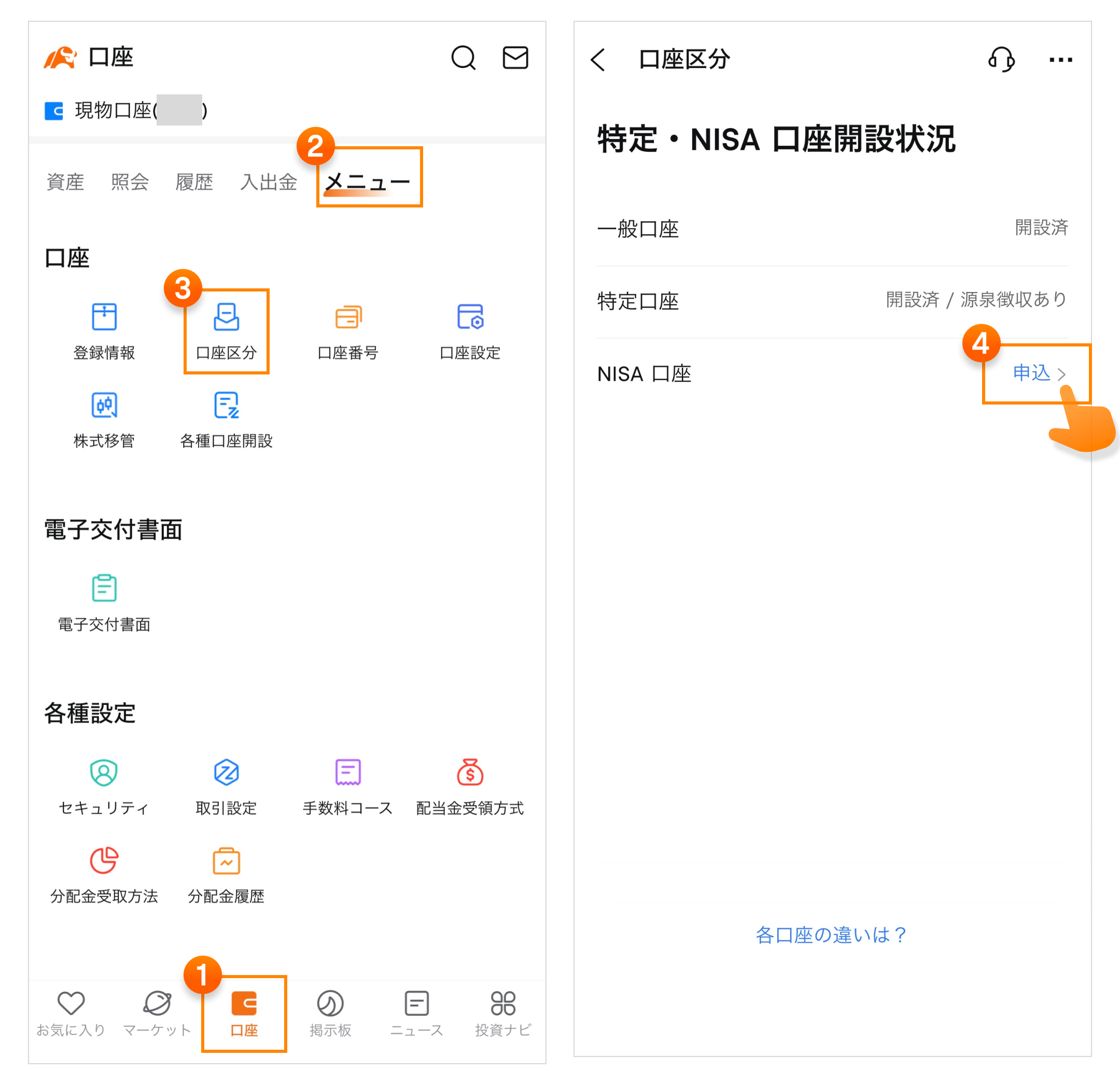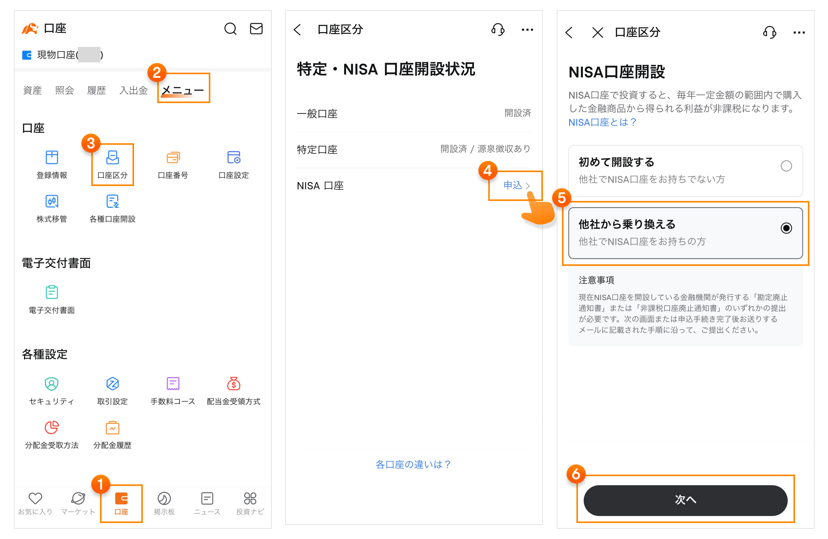 下記の手順をご参照のうえ、NISA口座の開設方法をご確認ください。