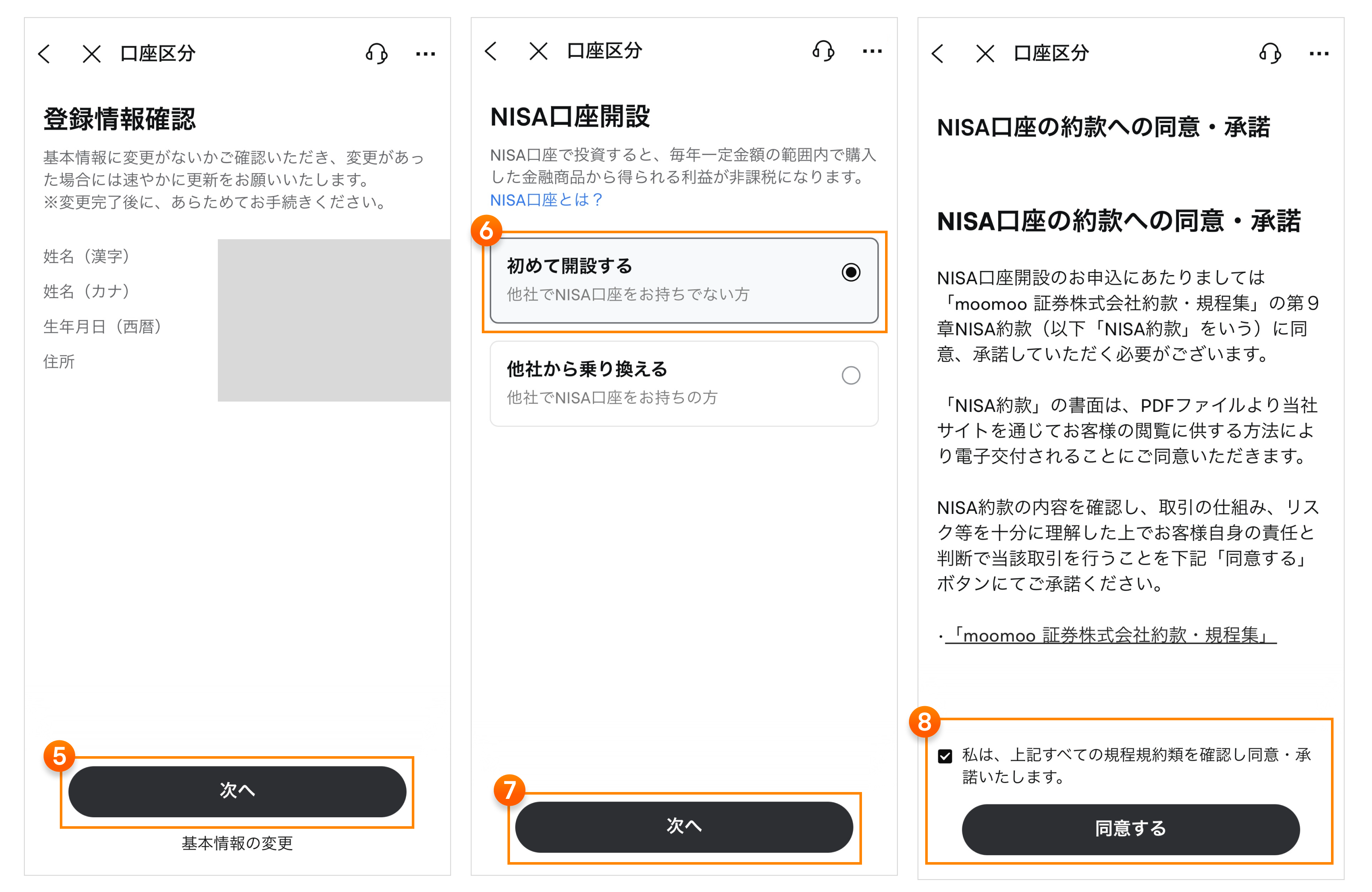 moomoo証券では、NISA口座の開設を簡単な操作でお手続きいただけます。