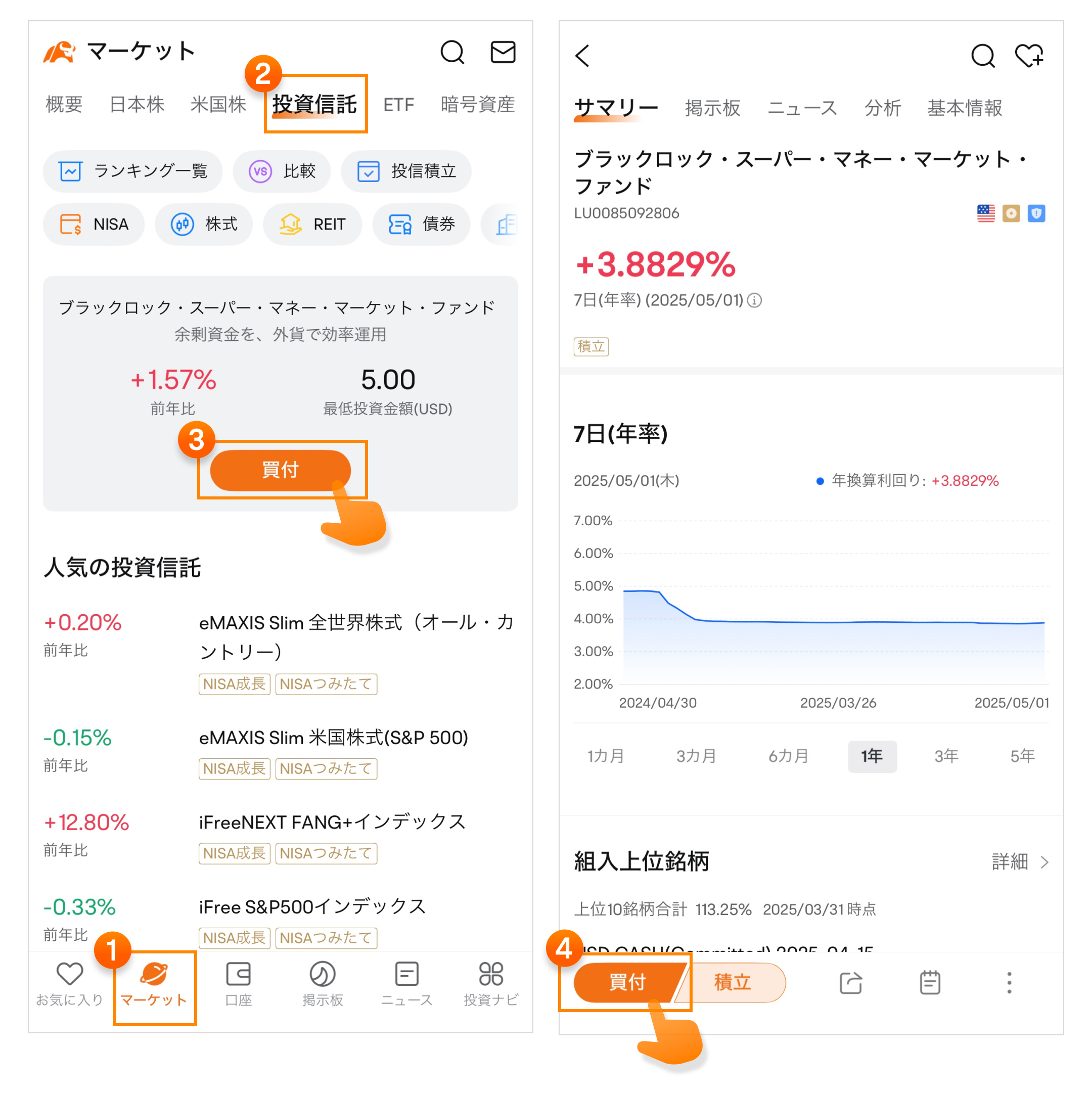 moomooアプリでは、簡単な操作で外貨建MMFの購入が行えます。