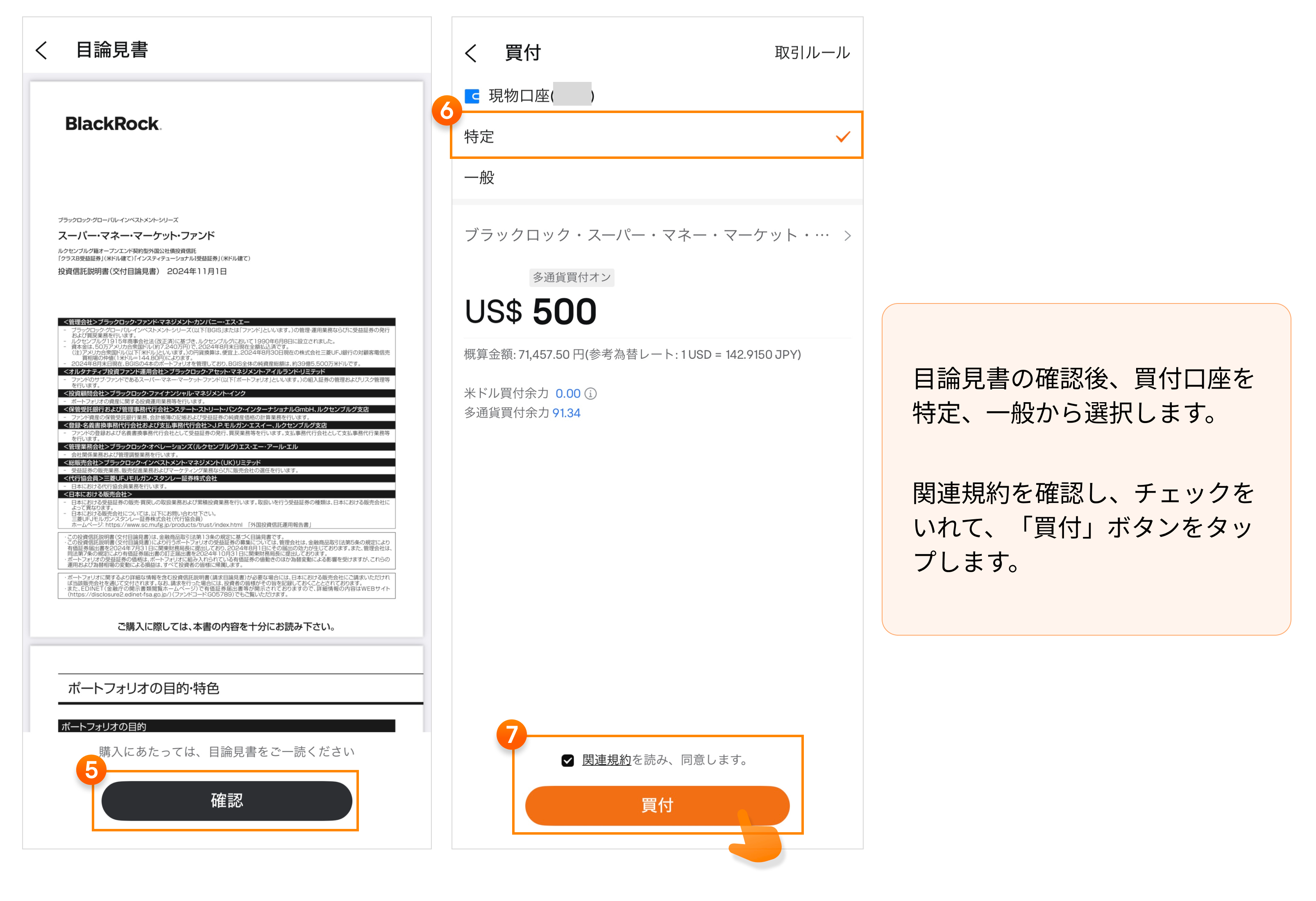 以下の手順に沿って、外貨建MMFの買付方法をご確認いただけます。