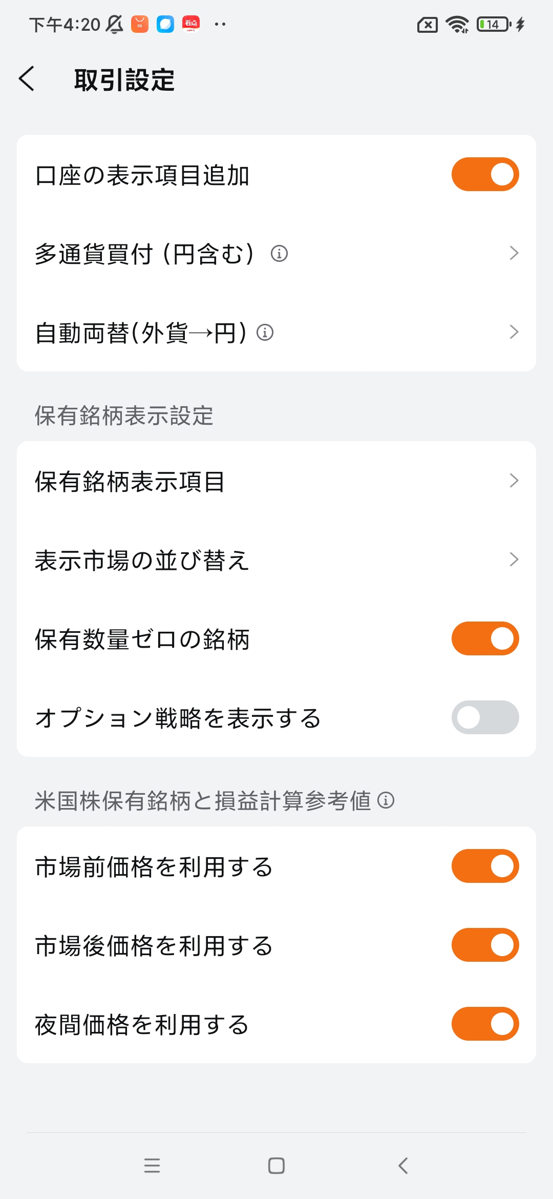 取引設定画面で、損益計算の参考値に夜間価格を指定することができます。