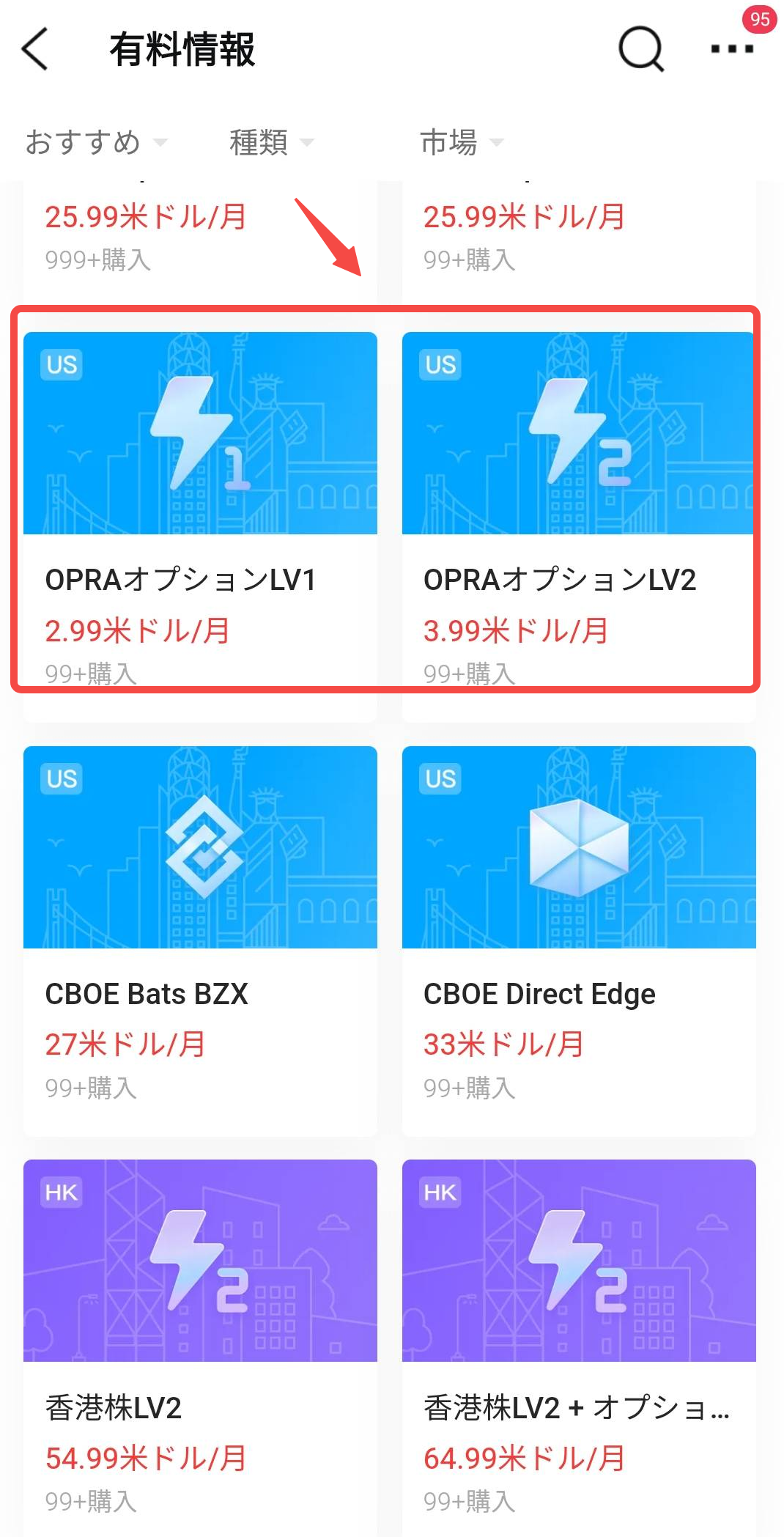 マイページ>有料情報>OPRAオプションLV1もしくはLV2
