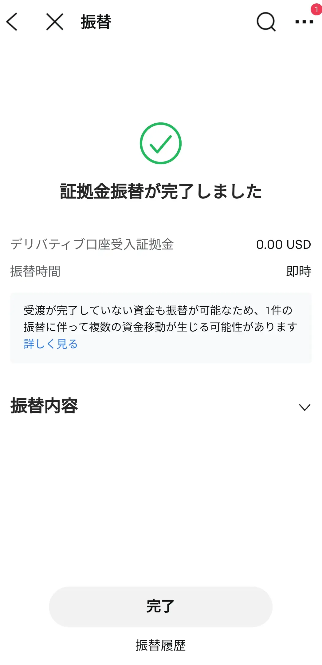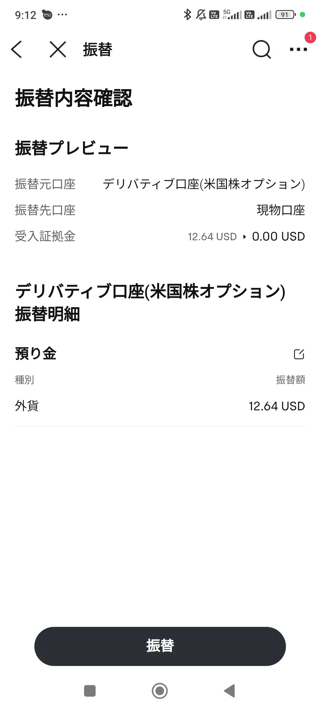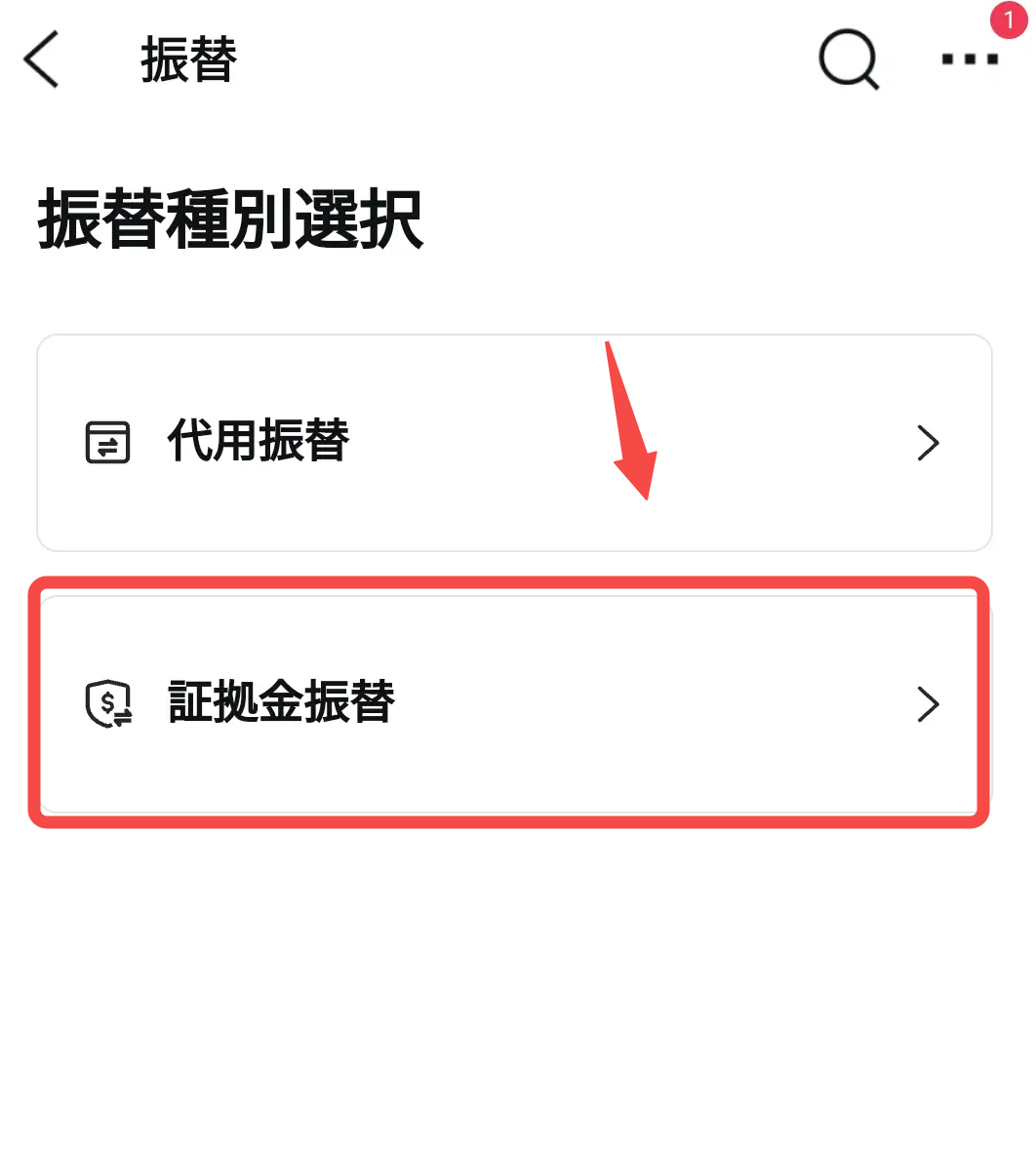 2. 振替で「証拠金振替」をタップする