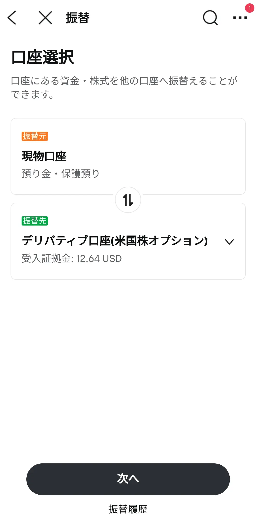 1. 口座→メニュー→振替をタップする