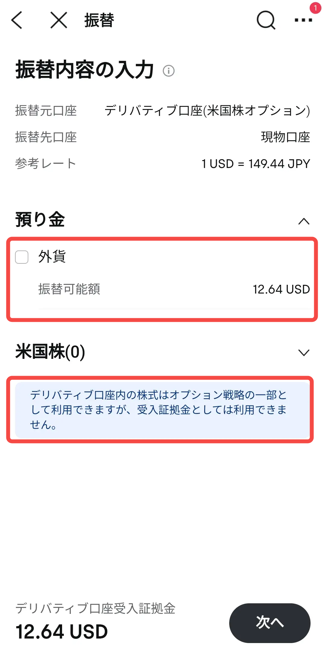 米国株オプション取引の証拠金は米ドル現金のみ利用できます。