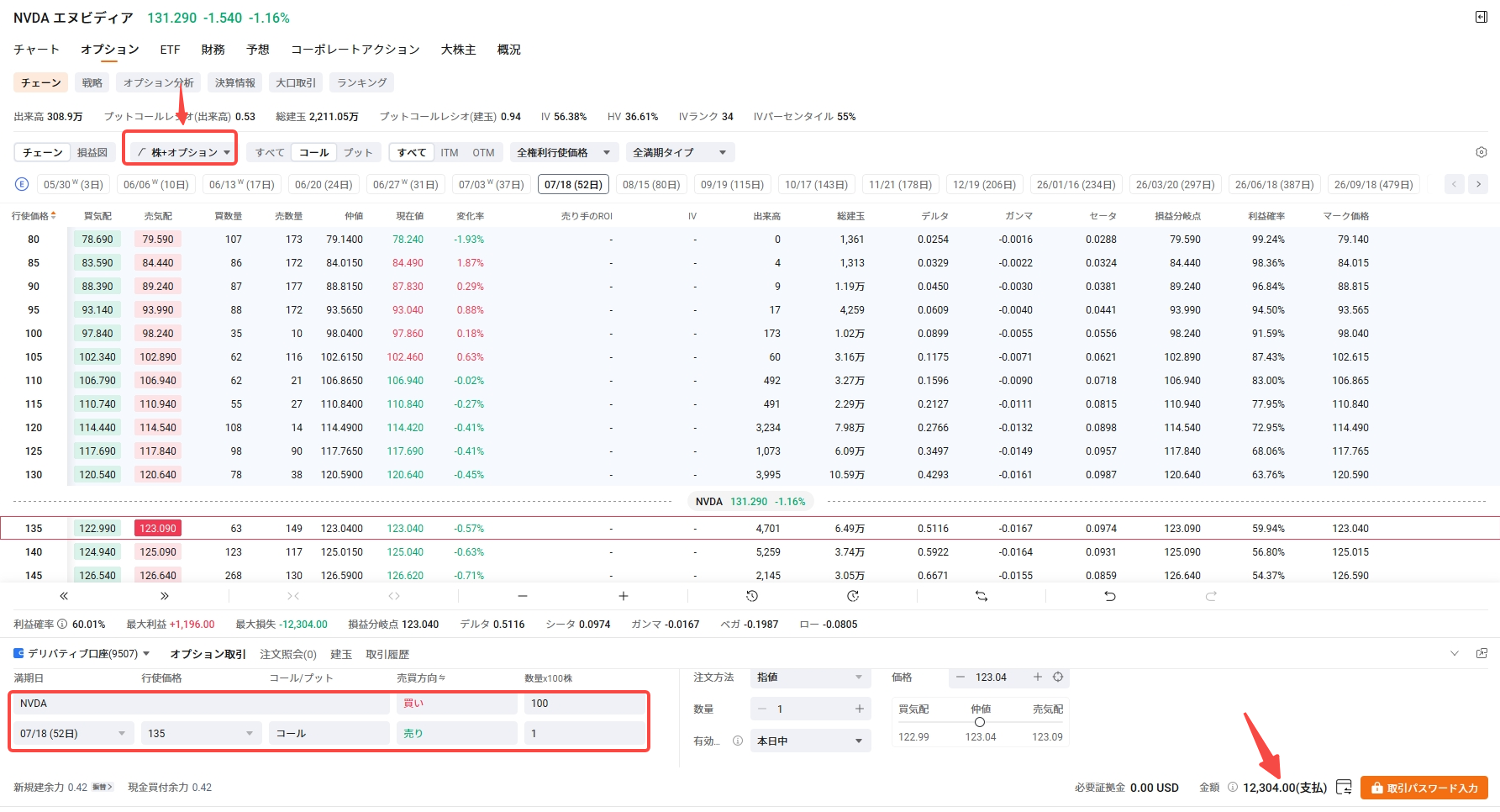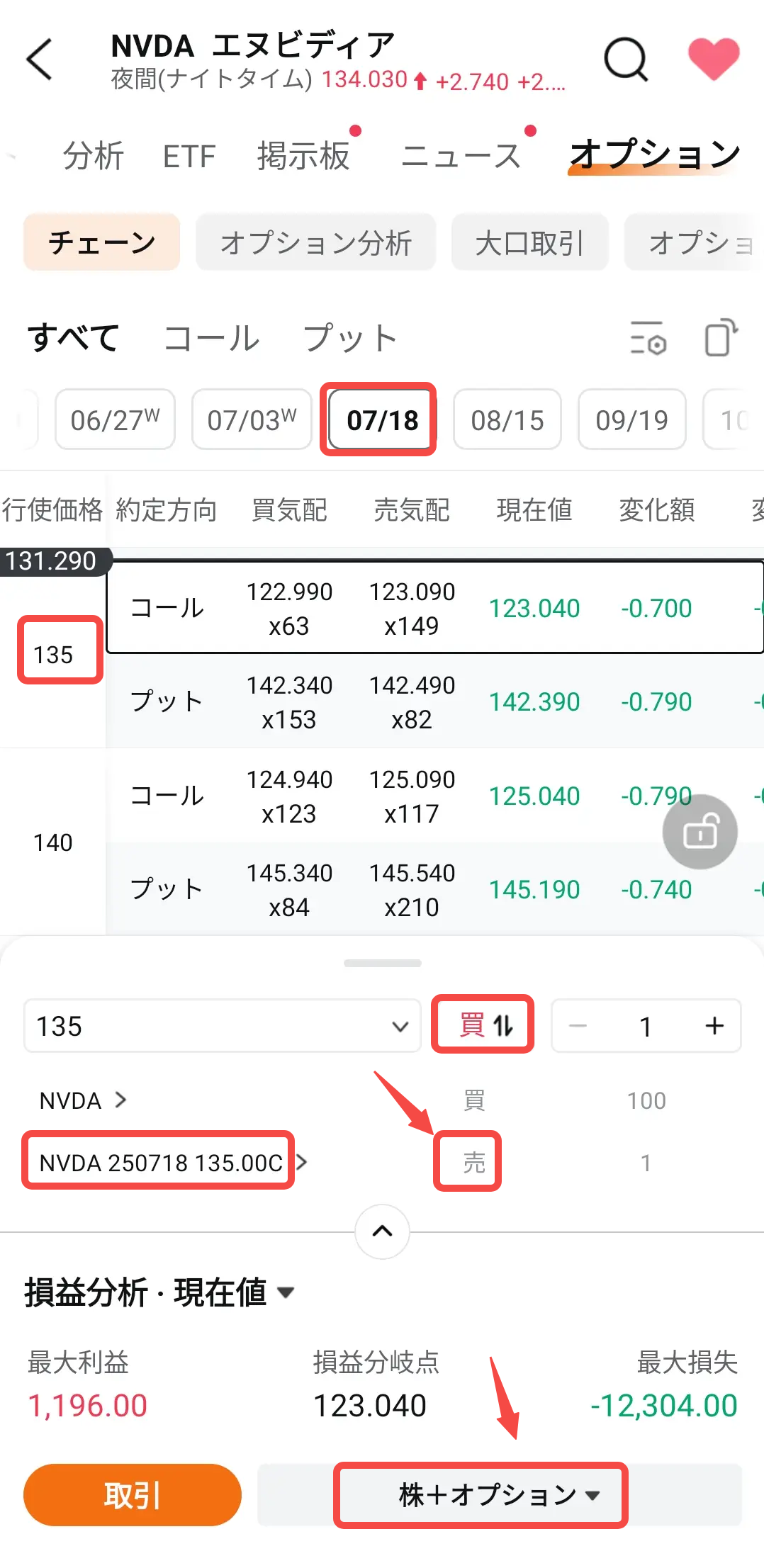 株価が135ドルまで上昇しなければNVDA100株は満期日に口座に残り、受け取ったプレミアムだけが最大の利益になります。
