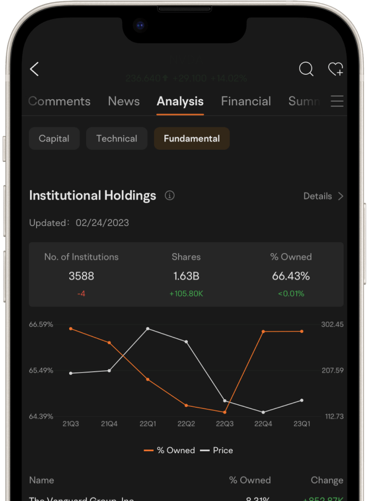 Easily analyze ownership activities with visualized and aggregated institutional holdings analysis.