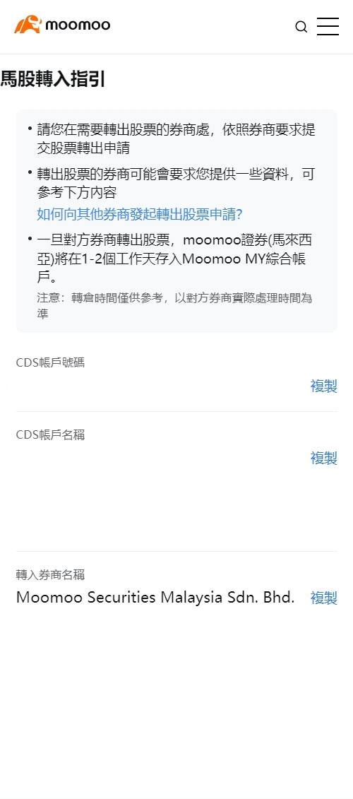 所需信息請在APP進行查看,查看路徑:帳戶 - 轉帳 - 轉入股票 - 轉入馬股