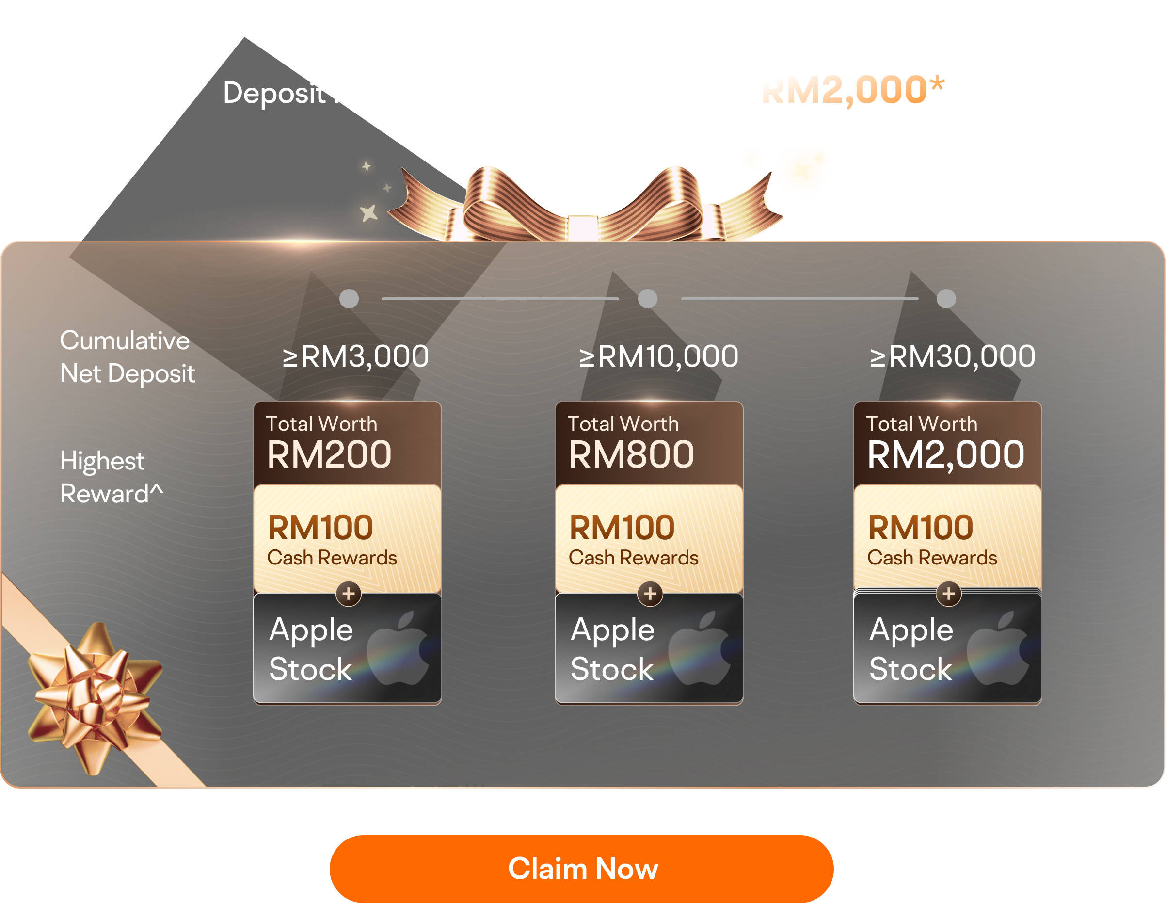 1.The rewards and offers in this campaign/promotion ("Campaign/Promotion") are provided by Moomoo Securities Malaysia Sdn. Bhd. ("Moomoo MY"). By participating in this Campaign/Promotion, you undertake to have carefully read and agree to be bound by the terms and conditions of this Campaign/Promotion ("Terms and Conditions"), as well as the terms and conditions of the existing Client Agreement. Moomoo MY has the final decision on the eligibility of participants in this Campaign/Promotion.