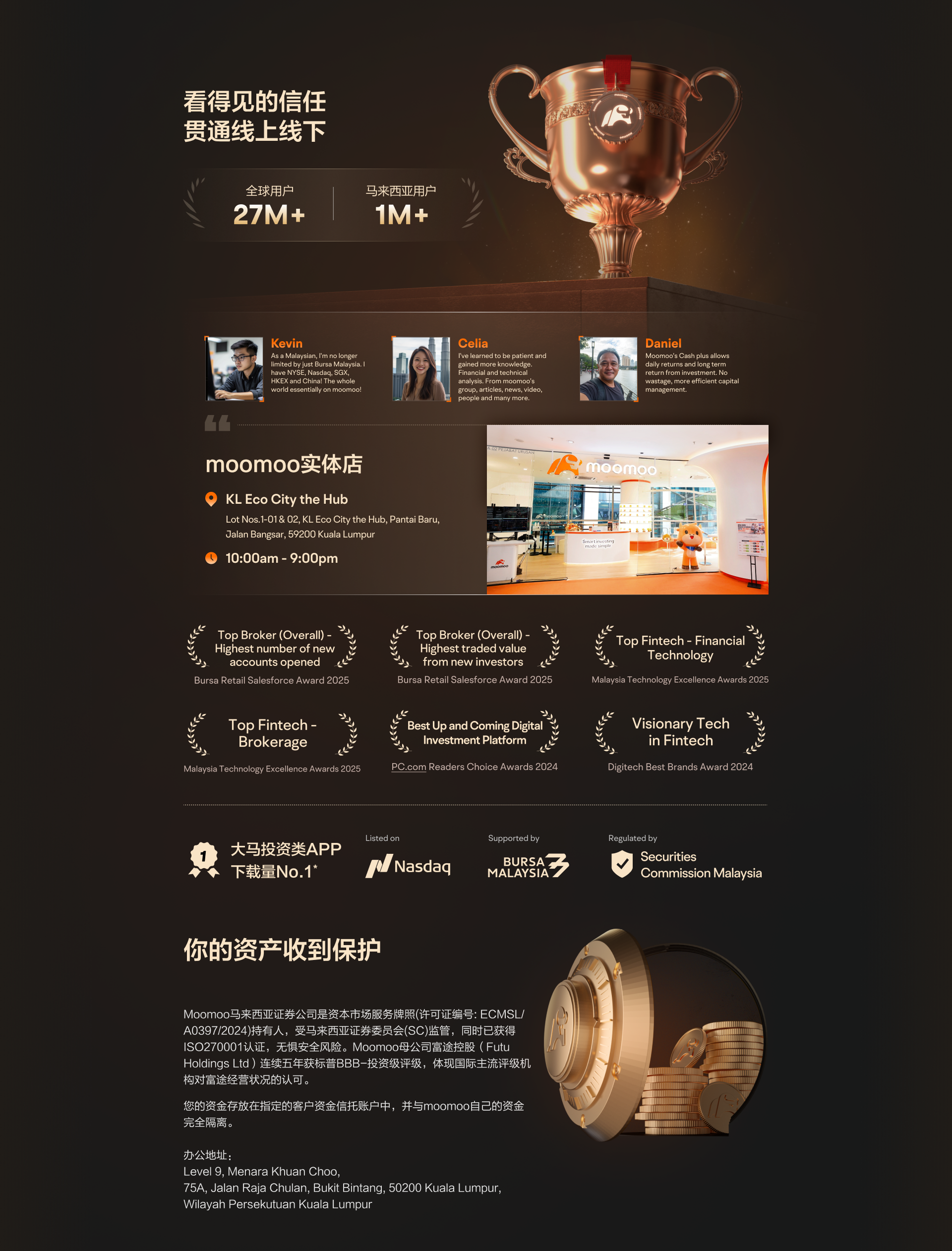 5.您只能在Moomoo MY开设综合账户。Moomoo MY不允许一个人代表另一个人开设综合账户(即不允许非受益所有人开户)。如果您不是最终受益人,请不要开设综合账户。如果您的通用帐户出现欺诈、滥用或可疑活动的迹象,例如使用多个帐户或设备,Moomoo MY可以自行决定没收您的奖励权利并限制您参与未来活动/促销活动的机会。6.每个设备,无论手机或电脑,都限于只能获得一套开户奖励,入金奖励和推荐奖励。同一用户仅能被成功邀请一次,同一moomoo帐号,同一手机号,同一设备均视为同一用户。7.在马来西亚,Moomoo APP上的投资产品和服务是通过Moomoo Securities Malaysia Sdn. Bhd. 提供,该公司受马来西亚证券监督委员会(SC)监管(牌照号码 : eCMSL/10397/2024), 持有资本市场服务牌照(CMSL)。Moomoo App 是由 Moomoo Technologies Inc. 提供的交易平台。本活动的任何内容均不应被视为购买或出售证券,期货或其他投资产品的要约、邀请或推荐。Moomoo MY不提供投资建议,也不推荐任何证券或交易。所有类型的投资都有风险,投资者可能会遭受损失。网页上的所有信息和数据仅供参考。过去的表现并不能保证未来的结果。本活动未考虑您的投资目标,财务状况或财务需求。