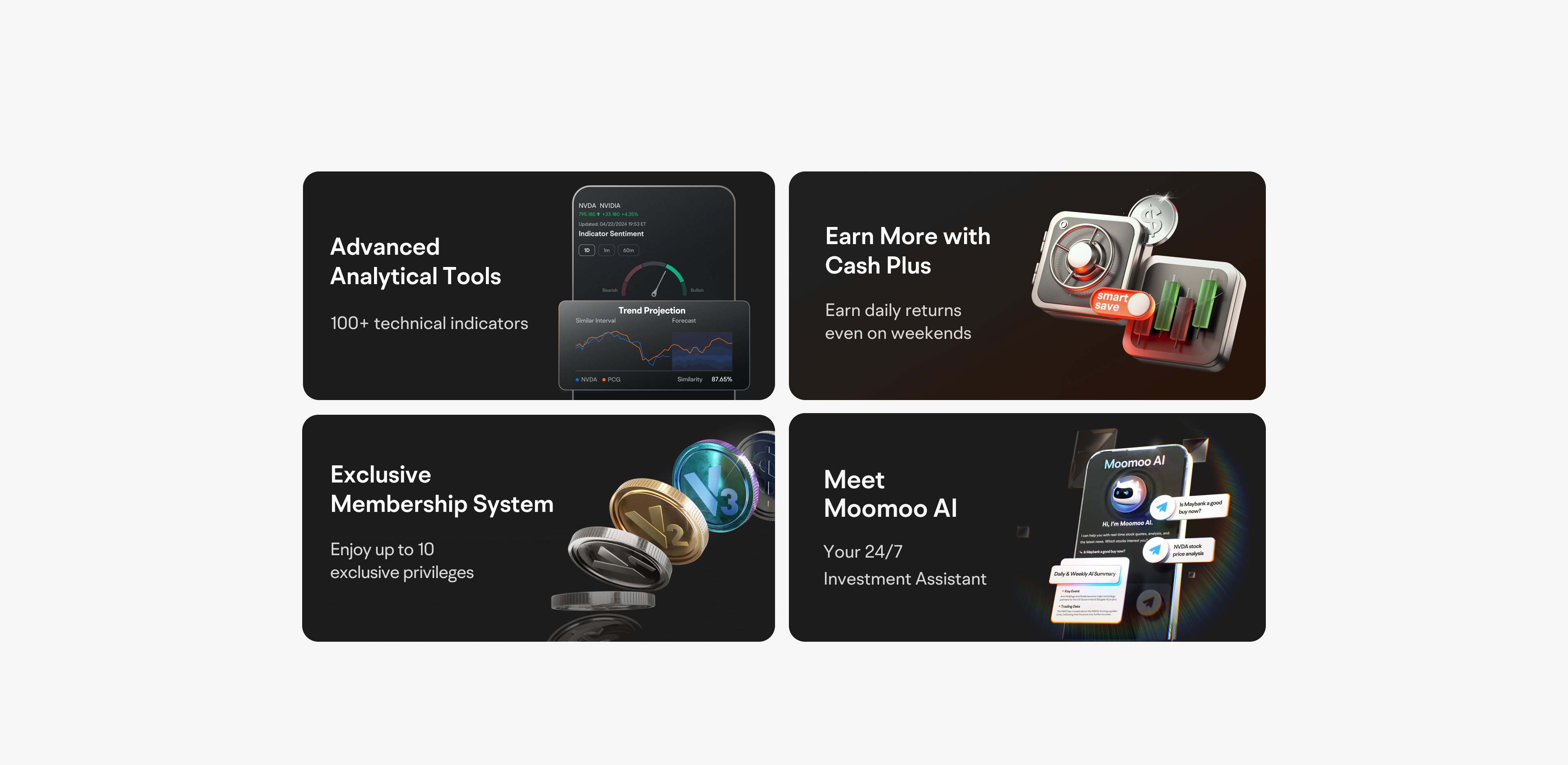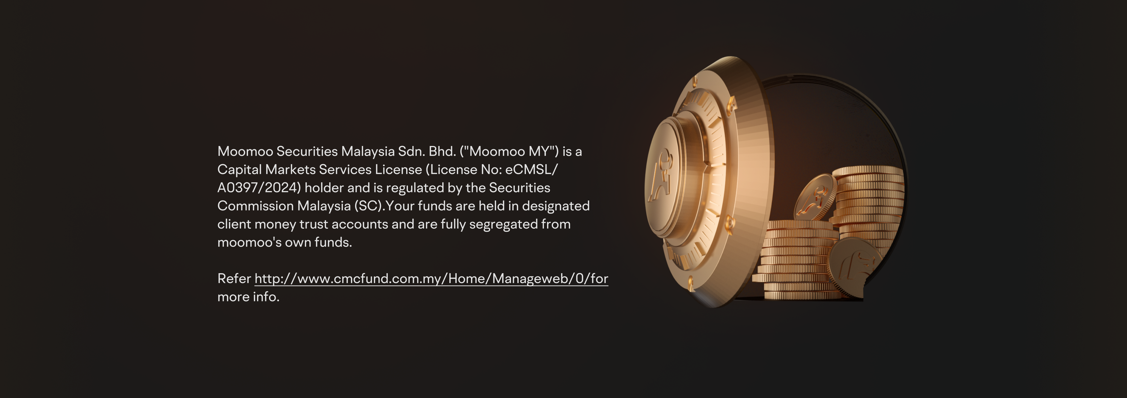 7. In Malaysia, the investment products available through the moomoo app are offered by Moomoo MY, a licensed entity registered with Securities Commission Malaysia ("SC") (License No. eCMSL/A0397/2024). The moomoo App is a trading platform provided by Moomoo Technologies Inc., a subsidiary of Futu Holdings Limited. Nothing in connection with this Camplaign/Promotion shall be construed as an offer, invitation or recommendation to buy or sell securities, futures or other investment products. Moomoo MY does not provide investment advice and does not recommend any securities or transactions. All types of investments involve risk, and you may suffer losses. All information and data on the webpage are for informational purposes only. Past performance is no guarantee of future results. This Campaign/Promotion does not consider your investment objectives, financial situation or financial needs.