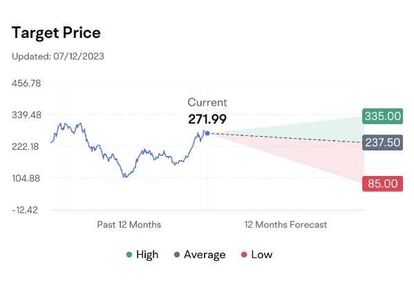 Under Consensus Rating, you may find the Target Price section. This section not only indicates the target stock's current price but also provides insights into the trend of its closing price over the past year. Additionally, it highlights the highest, lowest, and average target prices that the outside analysts have forecasted for the next year.The highest, lowest, and average target prices are all derived from the rating data for the past three months.Keep in mind, there is no guarantee that any price targets, opinions, or forecasts provided by the outside analysts will prove to be correct.