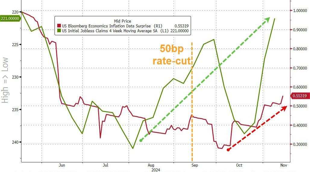 In fact, even aside from Powell's hawkish speech, a series of recent US economic data does not seem to support a rate cut much. As shown in the chart below, the number of initial jobless claims in the US has now dropped to a six-month low, and inflation data is generally stronger than expected. The economic and inflation situation still seems to face the risk of "not landing".