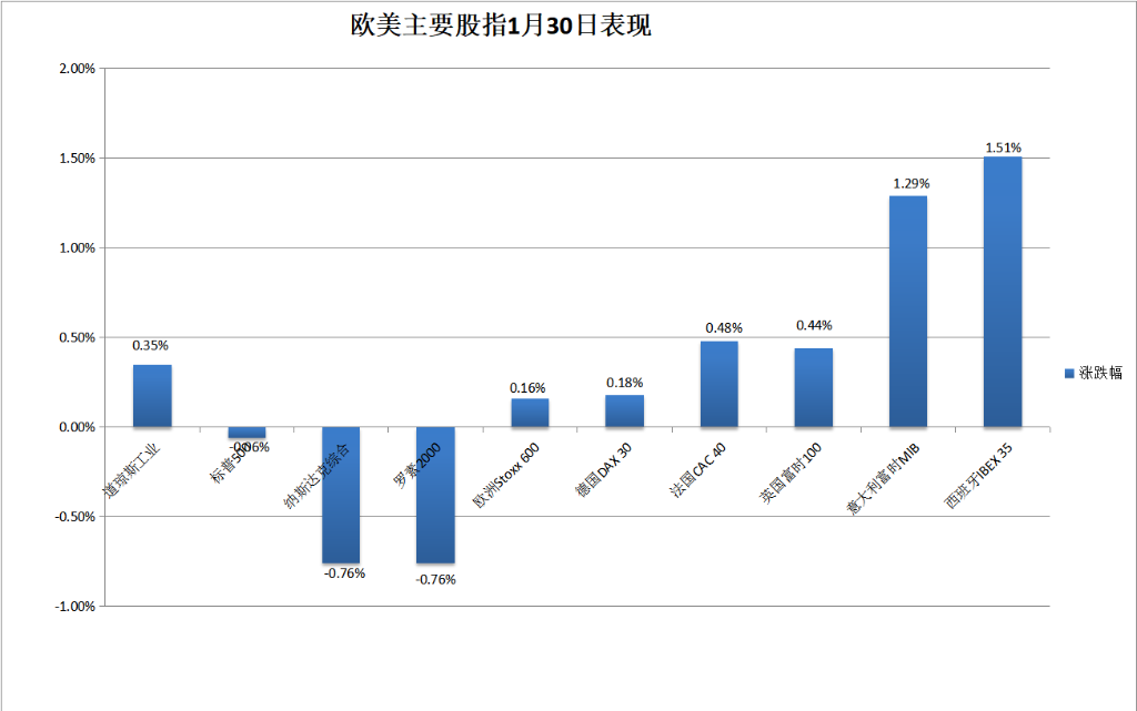 Among the various sectors, banks closed up 1.8%, benefiting from a 32% increase in net profit in the fourth quarter, which surged 6.2%, and the automotive sector rose nearly 1.1%, due to rival Stellantis rising 3.8% after GM's quarterly report was better than expected. Among other individual stocks, German shipping giant Hapag Lloyd closed down 9.6% after announcing that earnings for the fourth quarter were lower than expected due to damage to shipping in the Red Sea; Saudi Aramco abandoned plans to expand production capacity, and individual stocks related to oil and gas drilling fell sharply. Italy's Saibom, Shelf Drilling, and Borr Drilling all closed down more than 10%.